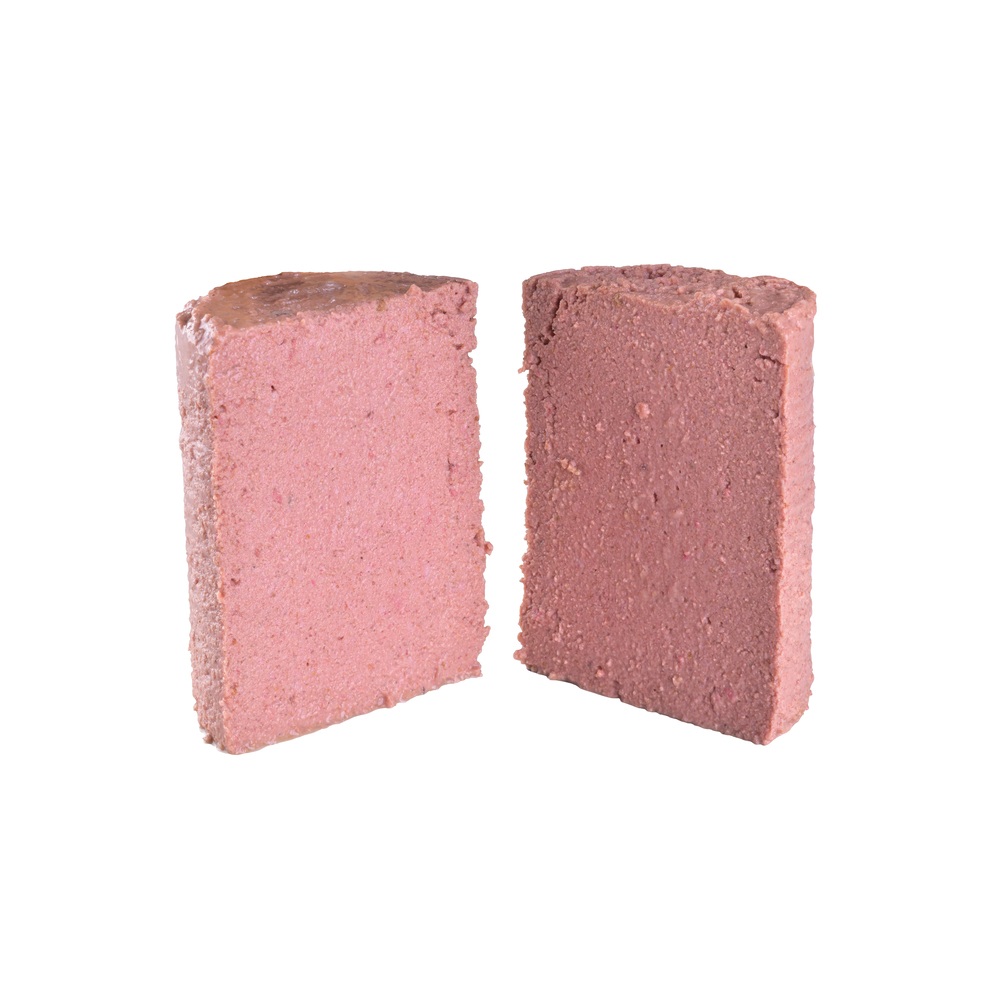 Лосось (30%), куриная печень (25%), масло лосося (2%), гороховая мука, пивные дрожжи (1,5%), лигноцеллюлоза, карбонат кальция, водоросли Schizochytrium (0,5%), подорожник (0,5%), водоросли Ascophyllum nodosum (0,5%), MOS (0,006%), бета-глюканы (0,005%), ФОС (0,005%), юкка Мохаве (0,005%), облепиха (0,004%).