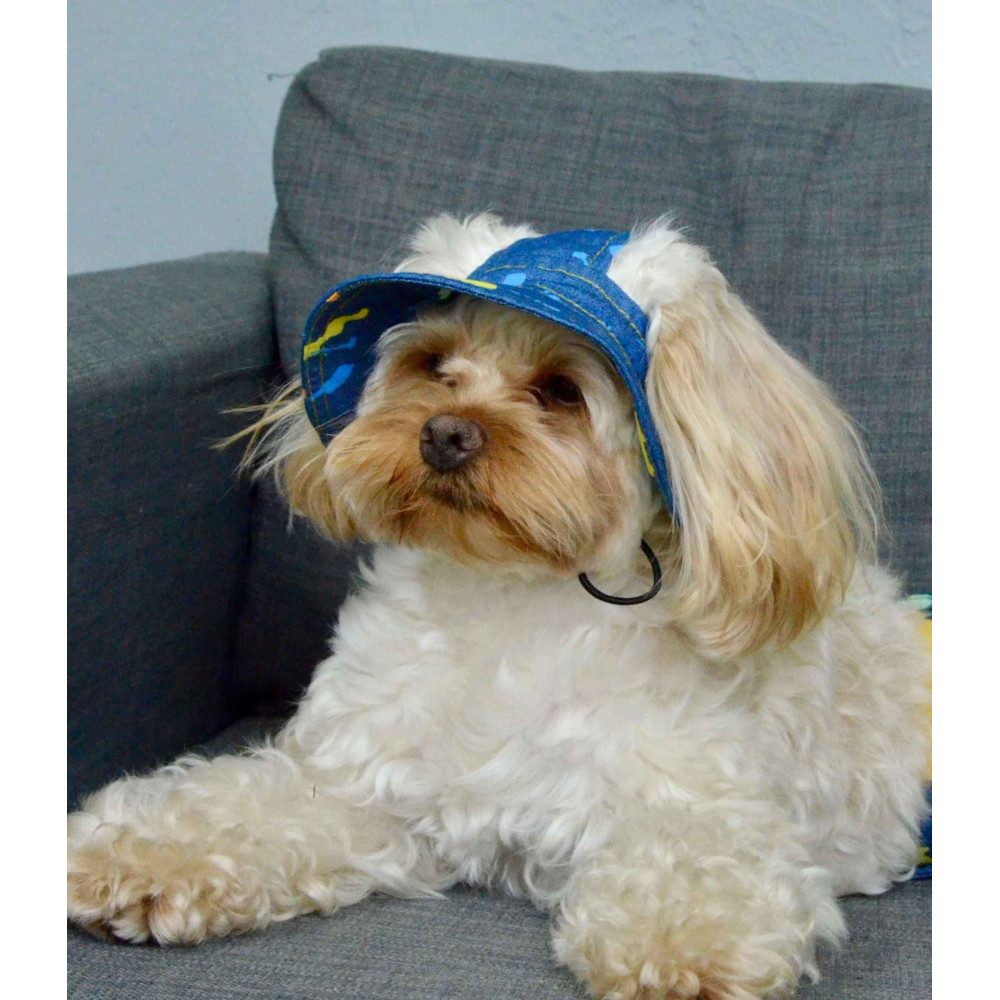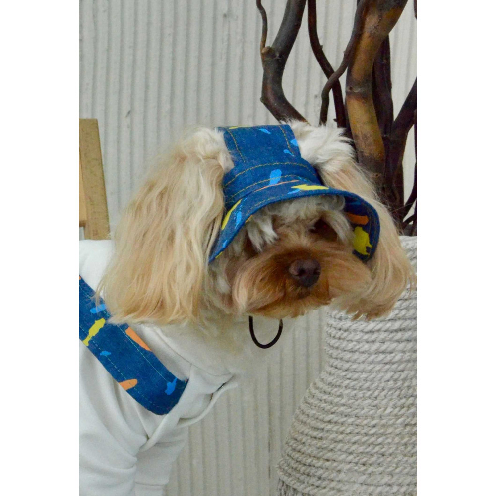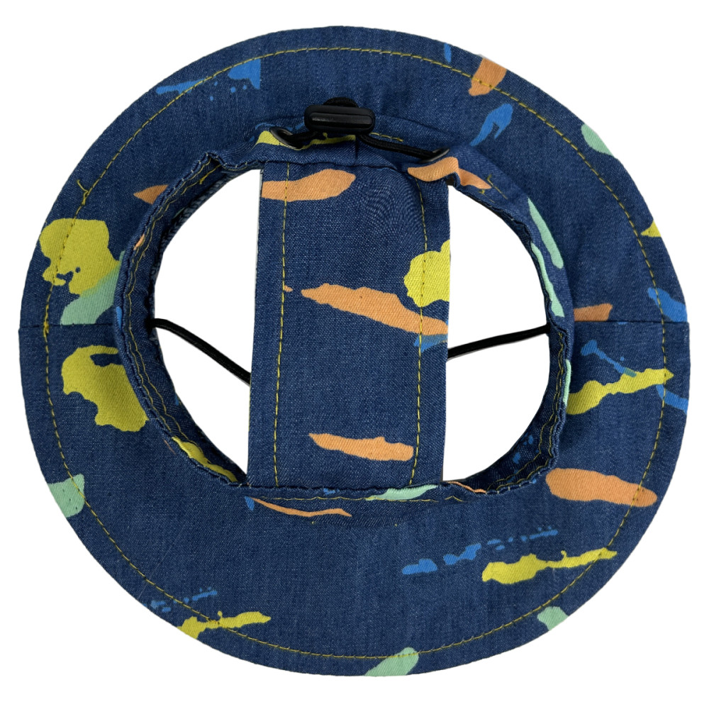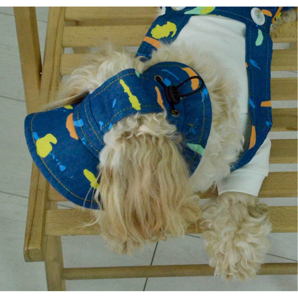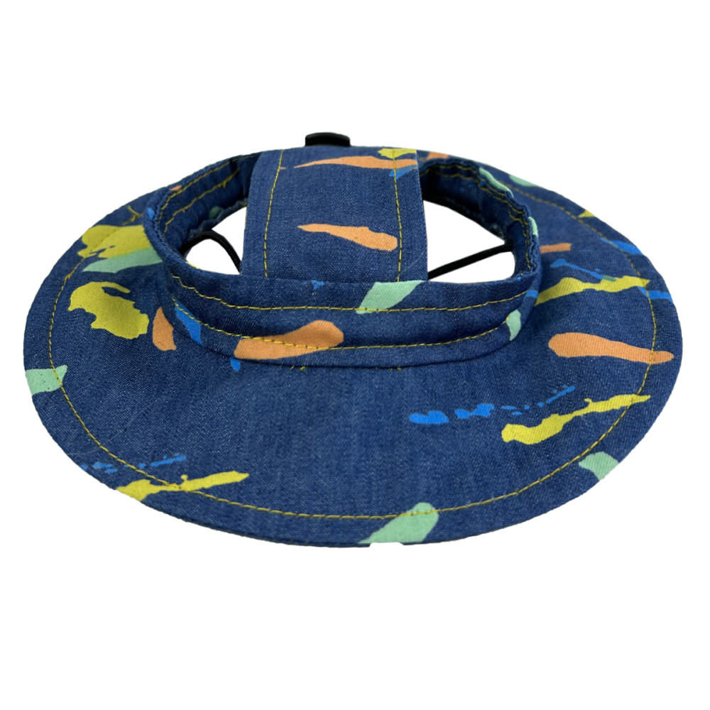 джинсовой ткани — лёгкая и дышащая ткань, идеальная для тёплых месяцев. Широкие поля создают тень над мордочкой и глазами собаки. Подбородочная резинка регулируется — панама не слетает во время бега.