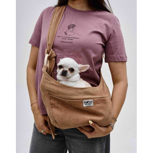 Слинг-переноска Dogs Bomba S-127 — удобная сумка для переноски собак мелких и средних пород из вельвета в исполнении в карамельном. Позволяет свободно носить питомца в городе, в транспорте и в магазинах, где собак не пускают на ногах.