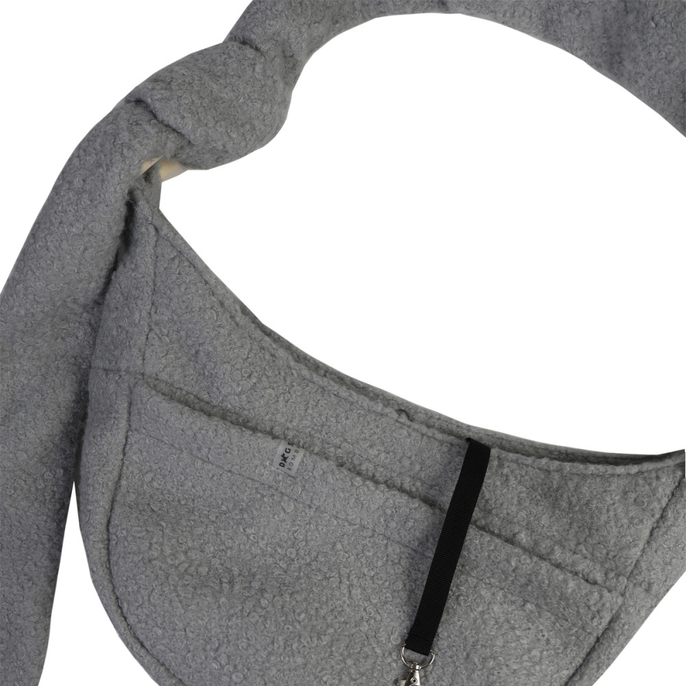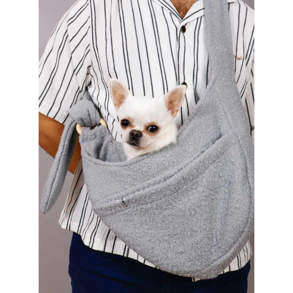 Слинг-переноска Dogs Bomba S-79 — удобная сумка для переноски собак мелких и средних пород из плюшевого тедди в исполнении в сером. Позволяет свободно носить питомца в городе, в транспорте и в магазинах, где собак не пускают на ногах.