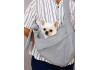 Слинг имеет широкие плечевые ремни и мягкий внутренний слой, который равномерно распределяет вес. У собак, которые не привыкли к переноскам, первые разы делают короткими (10-15 мин), чтобы приучить постепенно.
