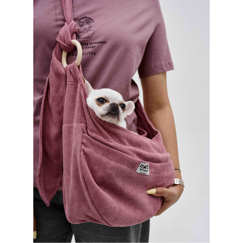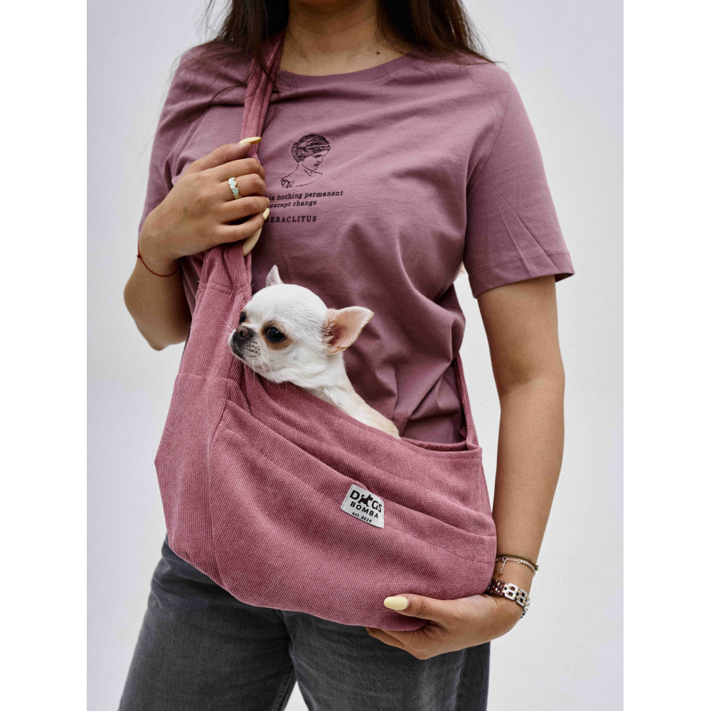 Слинг-переноска Dogs Bomba S-128 — удобная сумка для переноски собак мелких и средних пород из вельвета в исполнении в пудровом. Позволяет свободно носить питомца в городе, в транспорте и в магазинах, где собак не пускают на ногах.