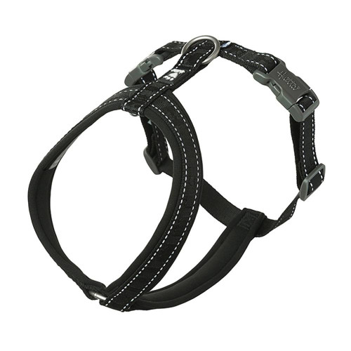 - Комфортная посадка: Регулируемый ремень на груди позволяет идеально подогнать шлейку под индивидуальные параметры собаки, а мягкая неопреновая подкладка предотвращает натирание.