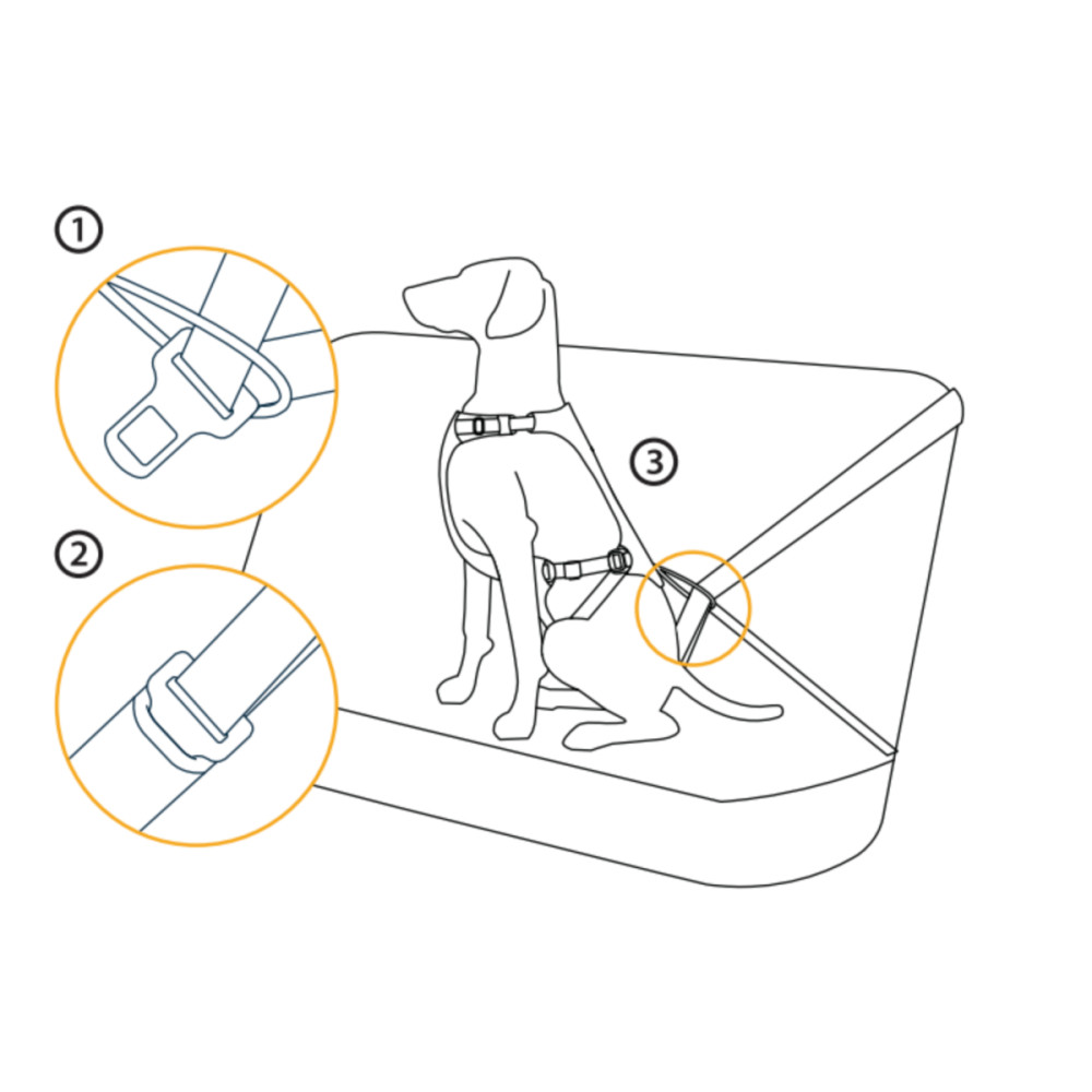 Просто пропустите стандартный ремень безопасности автомобиля через специальную петлю на спине шлейки и зафиксируйте его в замке, как обычно.