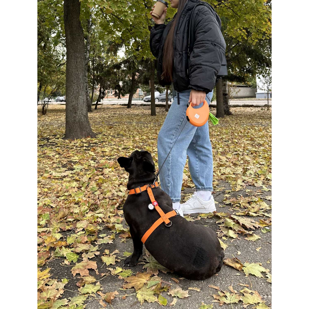 Чтобы создать яркий и функциональный комплект, рекомендуем дополнить шлею, выбрав поводки для собак серии Waterproof в оранжевом цвете.