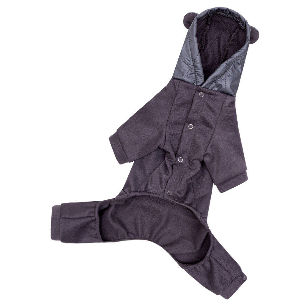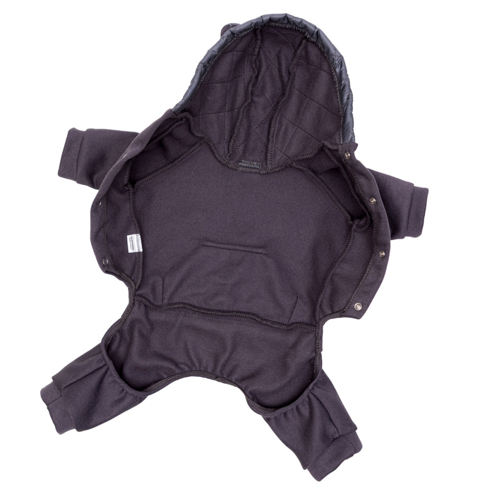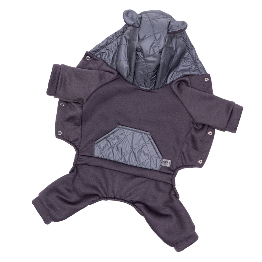 Ткань трехнитка с начесом гарантирует высокий уровень теплоизоляции и комфорта. На спине расположен специальный карман из плащевки с фирменным значком, который придает изделию стильный вид, а наличие капюшона дополнительно защищает шею и голову животного от ветра.Преимущества костюма Шторм с плащевкой серого для собак Dogs Bomba D-240: