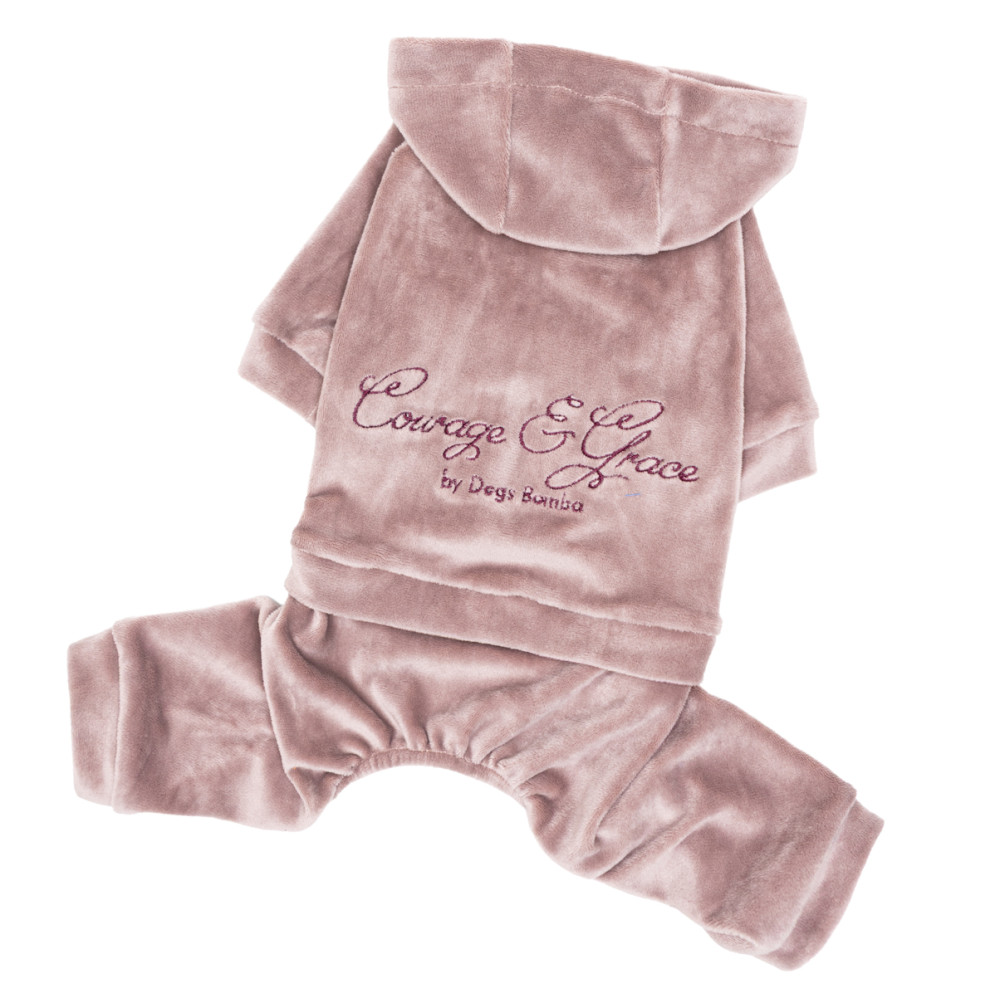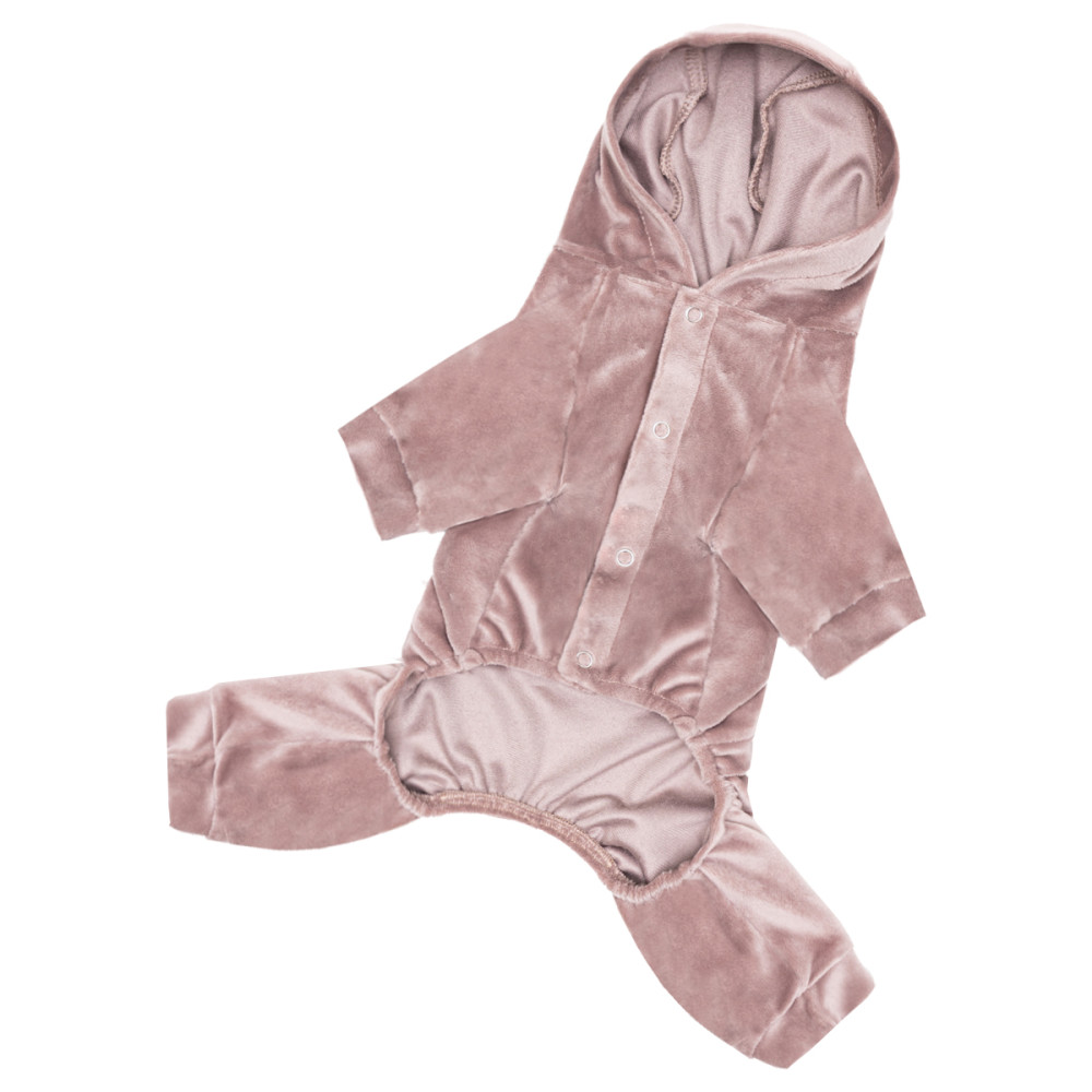 Костюм велюровый Кураж пудра D-243 изготовлен из мягкого и приятного на ощупь велюра, обеспечивающего комфорт во время носки. Модель оснащена капюшоном и украшена стильной брендированной вышивкой на спине. Застегивается изделие кнопками на животе, что облегчает процесс одевания. Отличный вариант для дома, прохладной весны или сухой осени. Зимой рекомендуем использовать как дополнительный слой под зимние комбинезоны для собак.