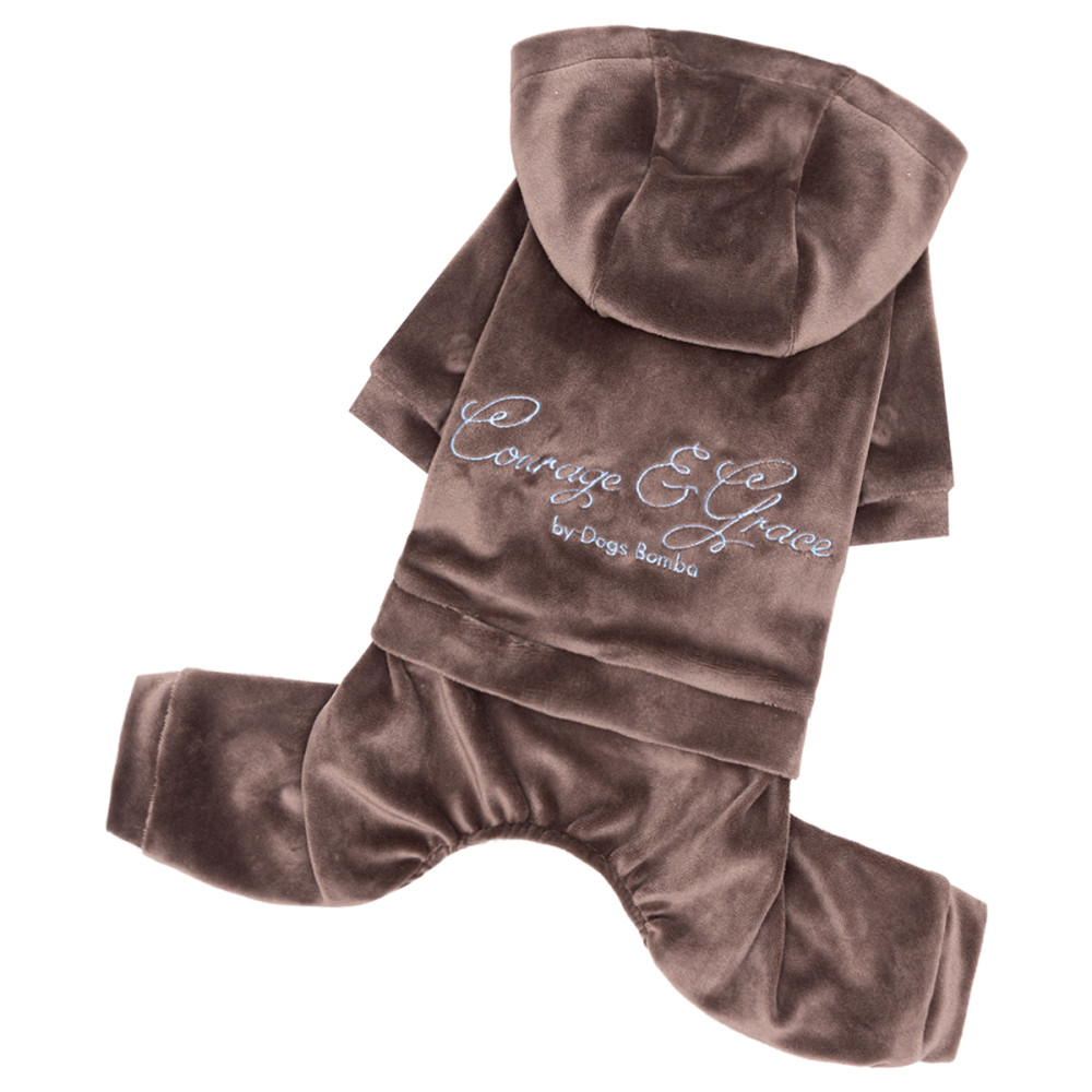Велюровый костюм Кураж тауп D-242 — это стильный и комфортный элемент гардероба вашего питомца. Модель выполнена из мягкого велюра, оснащена удобным капюшоном и украшена фирменной брендированной вышивкой на спине. Застежка на кнопках расположена на животе, что значительно упрощает процесс одевания. Отличный вариант для дома, прохладной весны или сухой осени. Зимой рекомендуем использовать как дополнительный слой под зимние комбинезоны для собак.