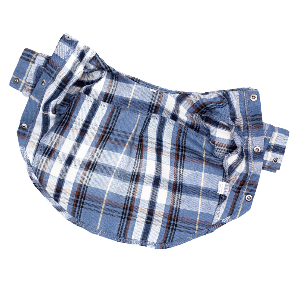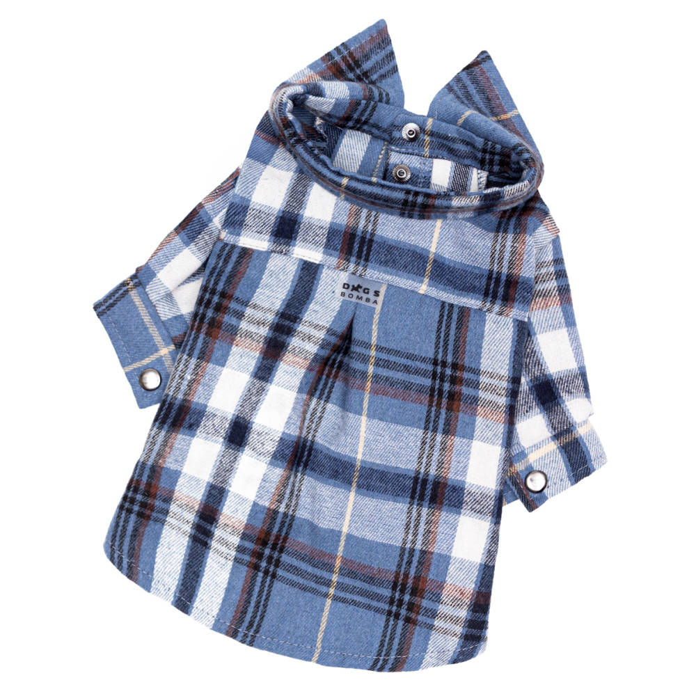 Легкая рубашка в клетку голубая для собак Dogs Bomba RY-65 изготовлена из дышащей ткани без утеплителя. Эта модель унисекс имеет удобную застежку на кнопках на животе, что облегчает процесс одевания. Отличный вариант для дома, прохолодной весны или сухой осени. Зимой рекомендуем использовать как дополнительный слой под зимние комбинезоны для собак.