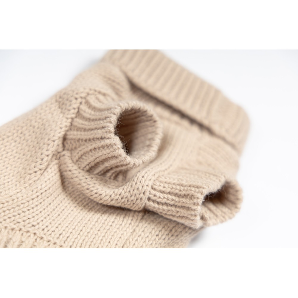 Высокий воротник с отворотом не только соответствует последним модным тенденциям, но и надежно защищает шею собаки от холода и ветра. Лаконичный дизайн и универсальный бежевый цвет делают этот свитер отличным выбором для ежедневных прогулок.