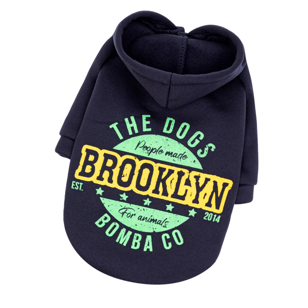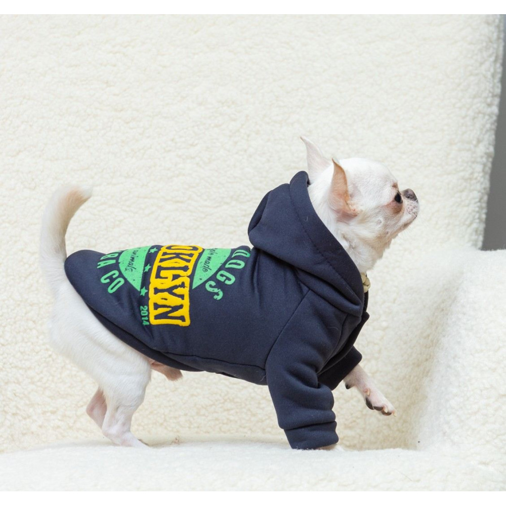 Ткань толстовки объединяет гладкий наружный трикотажный слой и мягкий внутренний флис. Такая структура материала защищает от легкого ветра и эффективно удерживает тепло тела животного, не сковывая его активных движений. Спинка изделия декорирована стойким текстильным принтом "Brooklyn".