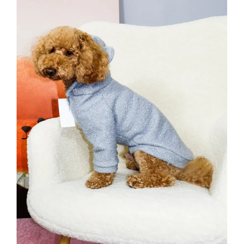 Толстовка для собак Y-374 в стиле “барашек” — это уют, тепло и очаровательный внешний вид. Модель сделана из мягкой букле-шерсти, которая хорошо сохраняет тепло, а флисовая подкладка внутри делает толстовку особенно комфортной. Капюшон с ушками придаёт образу милый акцент и защищает от ветра.