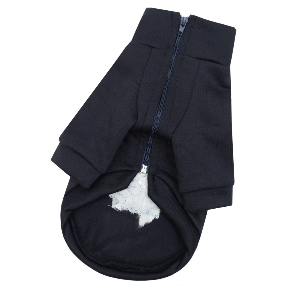 Основой модели выступает прочная ткань трехнитка, внутренняя сторона которой имеет мягкий начес. Этот материал эффективно удерживает тепло тела животного, не сковывает движения и защищает от пронизывающего ветра во время прогулок в демисезонный период.