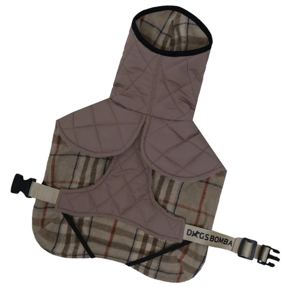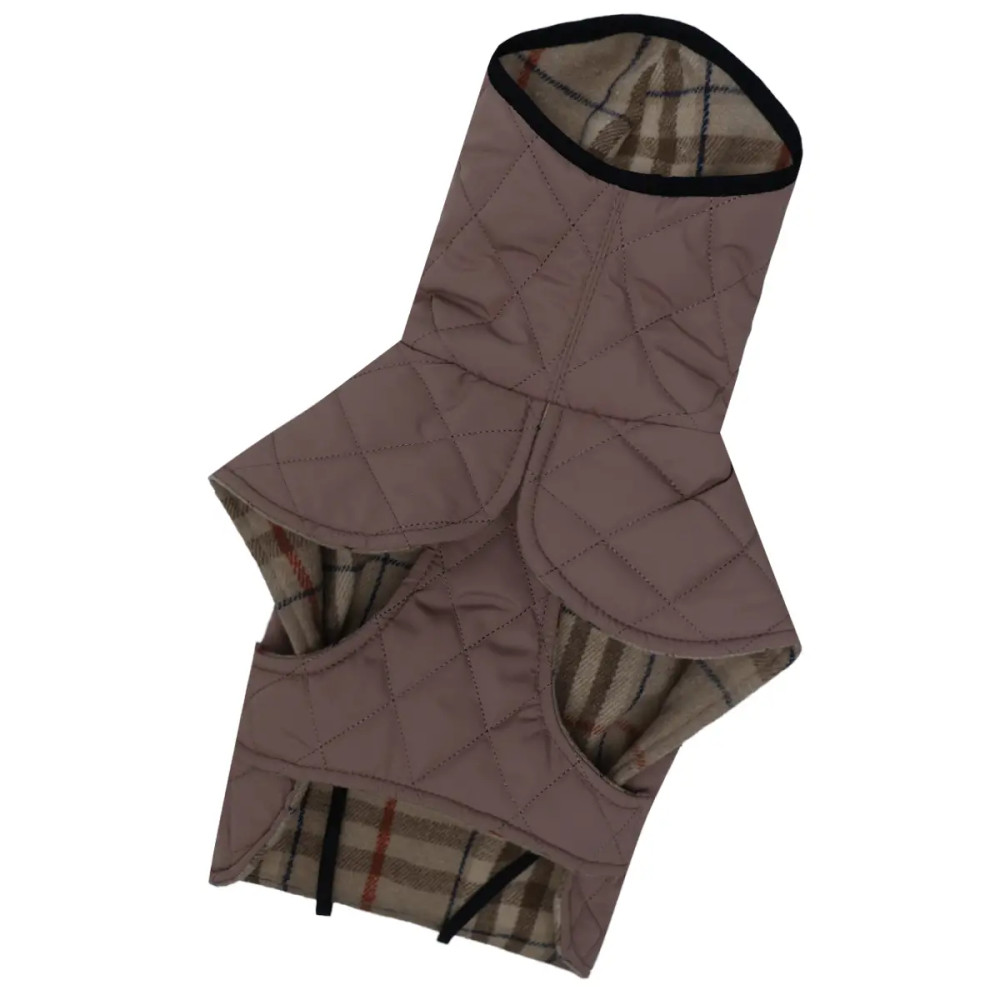 Двусторонний жилет для собак G-127 цвета мокко создан для тех, кто ценит комфорт и практичность в ежедневных прогулках. Внешняя сторона из плащёвки защищает от влаги, а мягкая клетчатая фланель внутри обеспечивает приятное тепло и уют. Лёгкая конструкция не сковывает движения и идеально подходит для межсезонья.