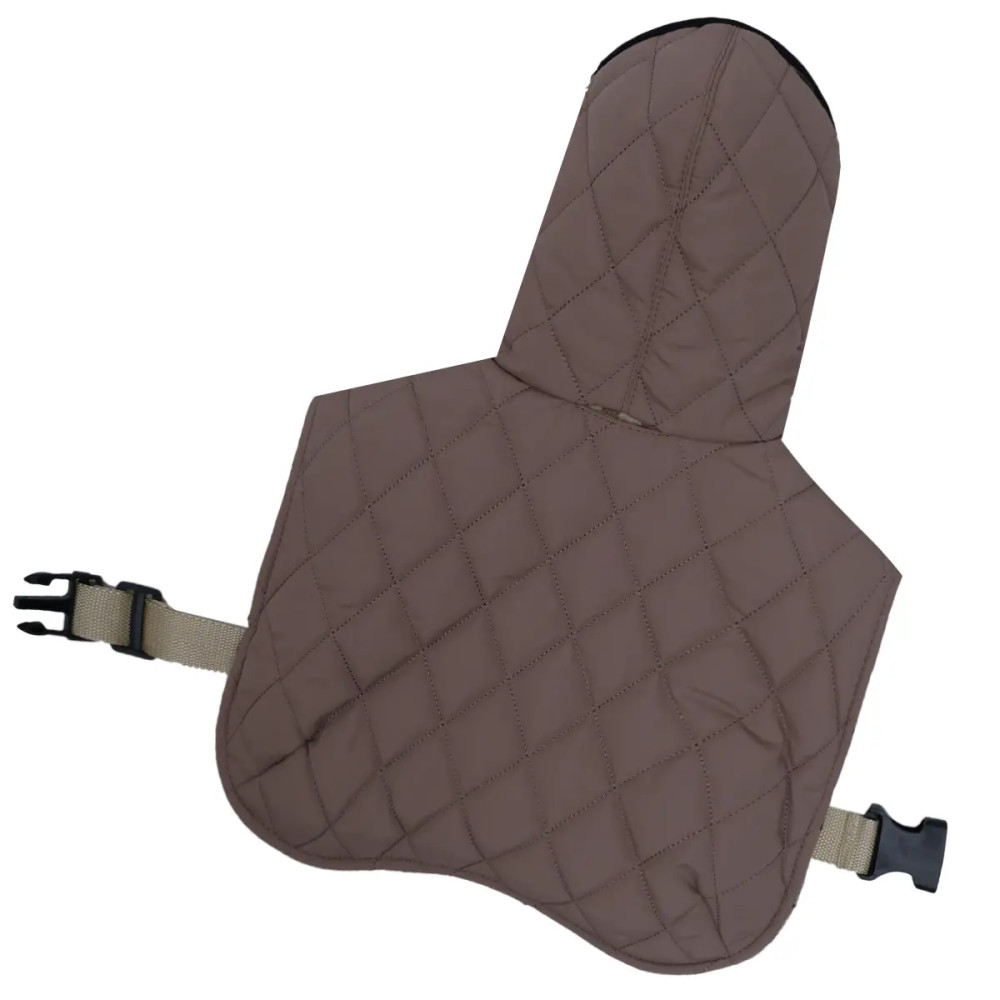 - Посадка/удобство: высокий ворот-капюшон, который можно поднять от ветра или сложить как обычный воротник; пояс с регулировкой помогает подогнать посадку по телосложению собаки.