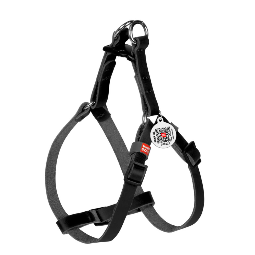 Для створення стильного монохромного образу рекомендуємо доповнити шлею чорним повідцем WAUDOG з натуральної шкіри.
