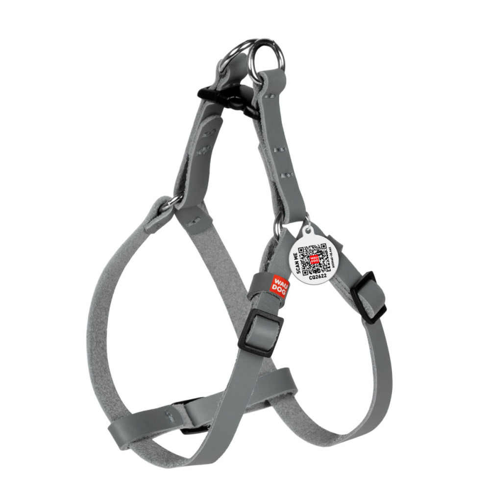 Для створення гармонійного образу рекомендуємо доповнити шлею сірим повідцем WAUDOG з натуральної шкіри.