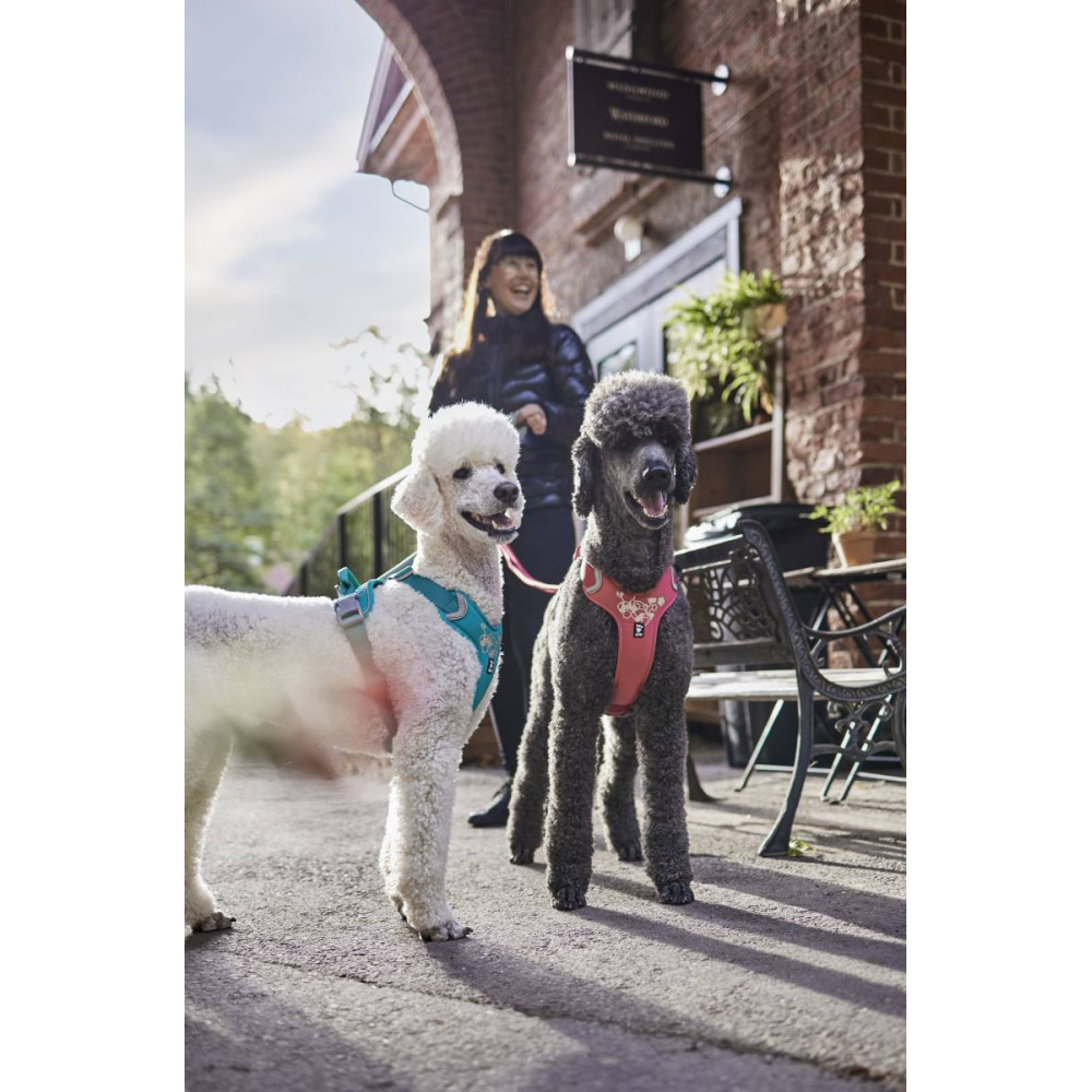 Так, її ергономічна конструкція спеціально розроблена, щоб рівномірно розподіляти тиск по грудній клітці, а не на шию, що робить її ідеальним вибором для активних собак.