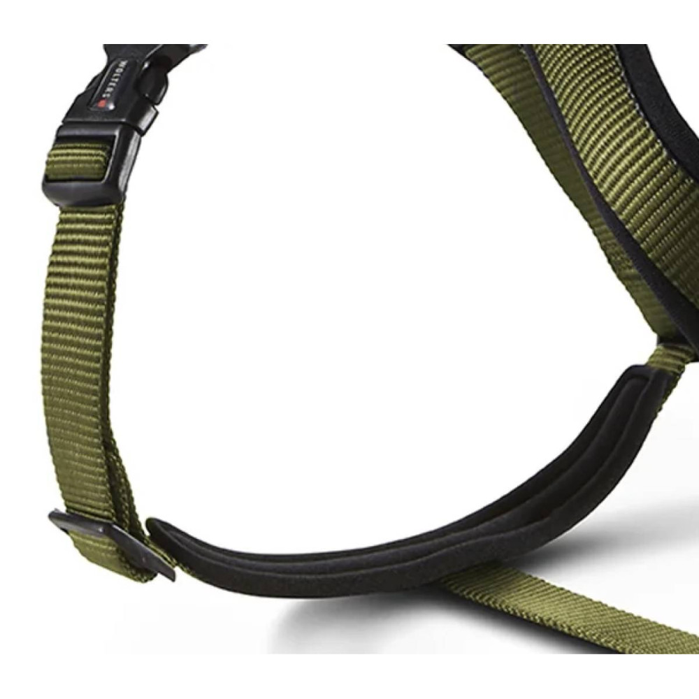 Шлейка для собак Wolters Professional Comfort створена для максимальної зручності та безпеки вашого улюбленця. Зовнішня частина виготовлена зі зносостійкого нейлону, а внутрішня — з м'якого неопрену, що запобігає натиранню та забезпечує комфорт під час тривалих прогулянок. Нагрудна пластина з неопреновою підкладкою оптимально розподіляє навантаження, коли собака тягне повідець, захищаючи шию та грудну клітину.
