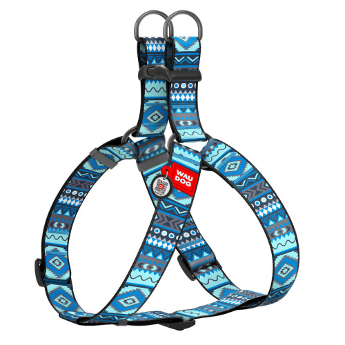 Стильна амуніція серії WAUDOG Nylon з оригінальним візерунком "Етно синій" підкреслить індивідуальність вашого собаки. Шлея виготовлена з високоякісного нейлону, який стійкий до зношування та легко очищується від забруднень. Щоб створити ідеальний комплект для прогулянок, рекомендуємо доповнити амуніцію, обравши повідці для собак з відповідним етнічним дизайном.