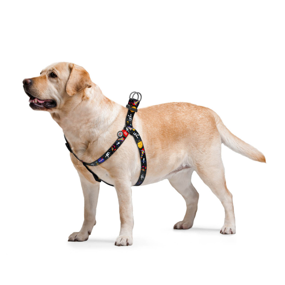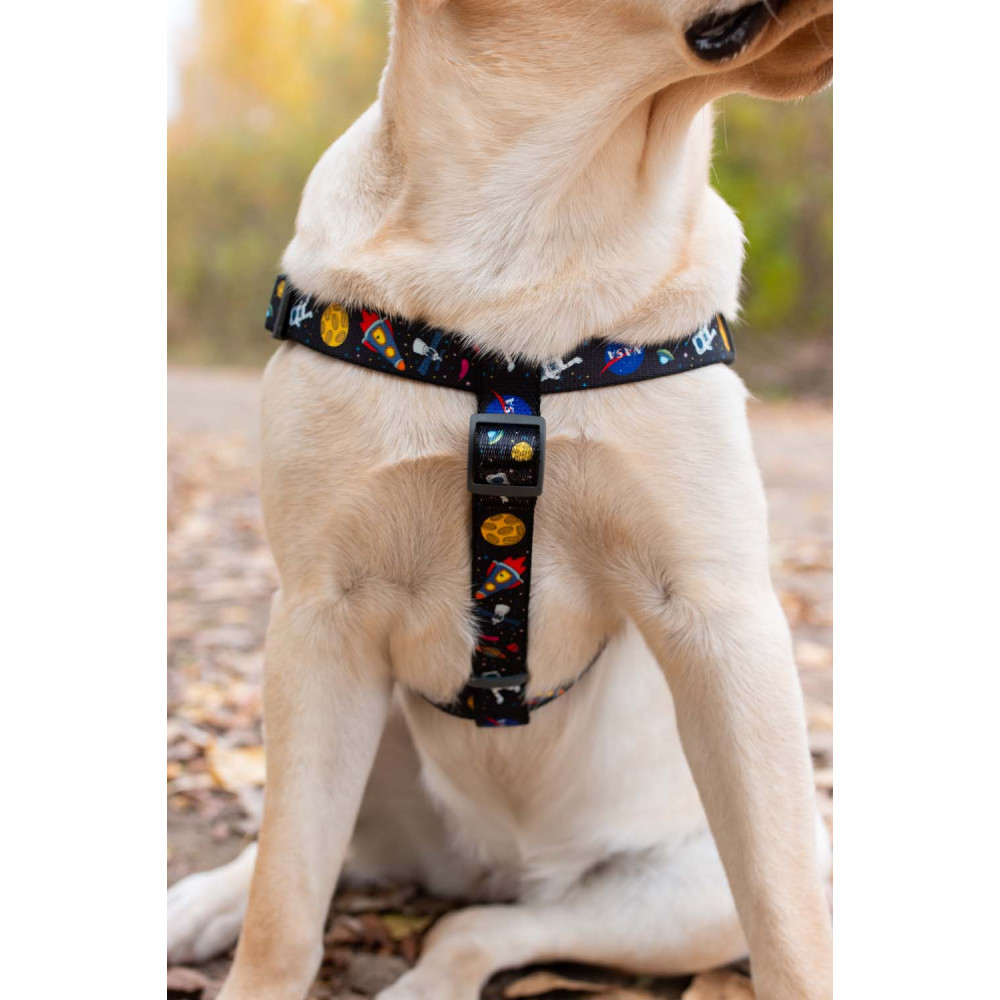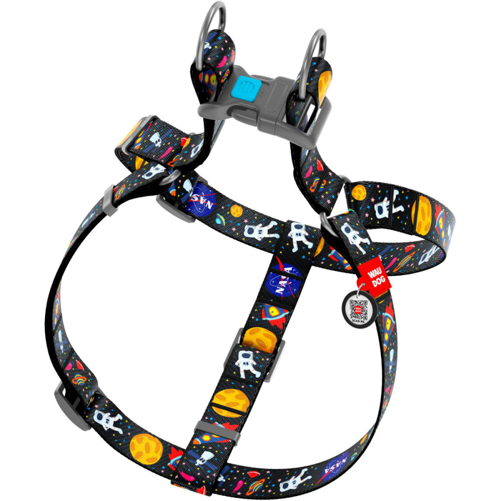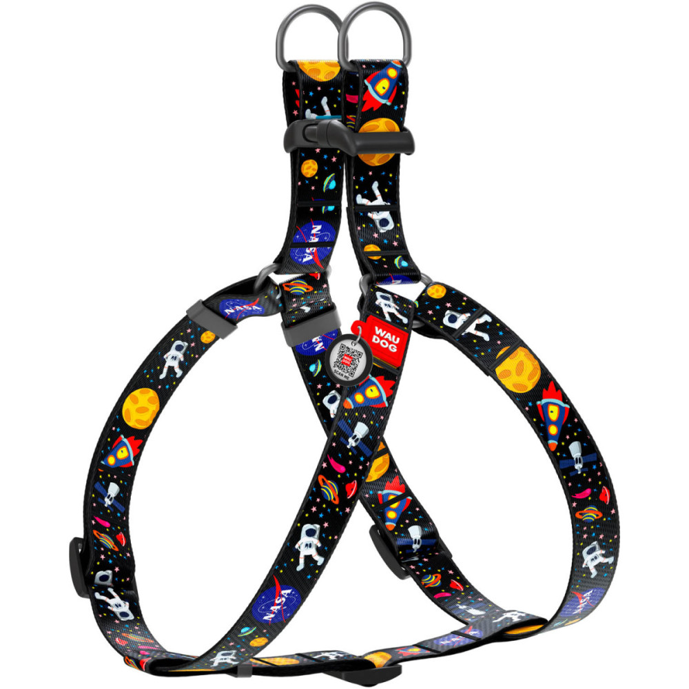 Шлея для собак WAUDOG Nylon з дизайном «NASA» — це зручна та безпечна альтернатива нашийнику для щоденних прогулянок. Анатомічна конструкція правильно розподіляє навантаження по корпусу собаки та не здавлює дихальні шляхи навіть при активному русі або ривках повідця.