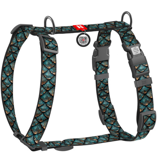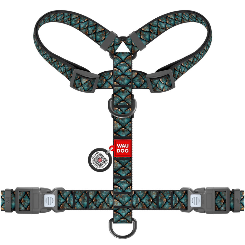Шлея WAUDOG Nylon у фантастичному дизайні "Луска" перетворить вашого собаку на міфічного дракона! Цей яскравий принт поєднує насичені кольори та візуальну текстуру, що притягує погляди перехожих. Окрім казкового вигляду, це насамперед професійна анатомічна амуніція, яка дбає про здоров'я вашого улюбленця.