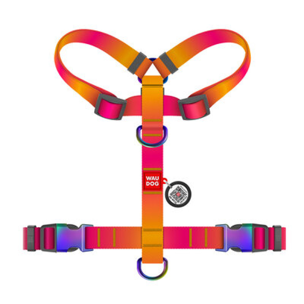 Конструктивні особливості: шлея WAUDOG Nylon завдяки особливій Н-подібній формі ідеально сідає на собаку і забезпечує йому максимальний комфорт. Вона розроблена таким чином, що при натягу повідця не відбувається стискання дихальних шляхів тварини. Має 2 півкільця для повідця (верхнє та нижнє), що дозволяє більш рівномірно розподілити фізичне навантаження на опорно-руховий апарат собаки. Яскравий помаранчевий градієнт додає енергії та чудово виглядає на будь-якому одязі для собак.