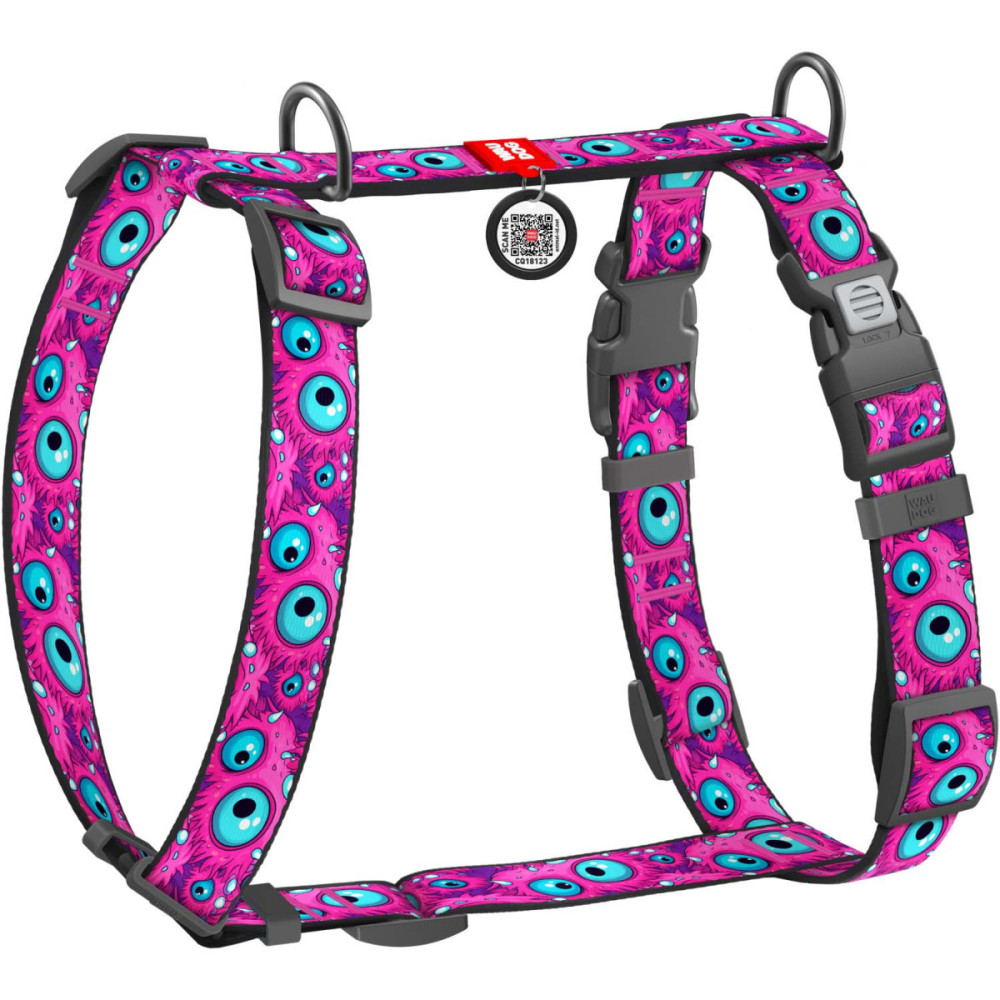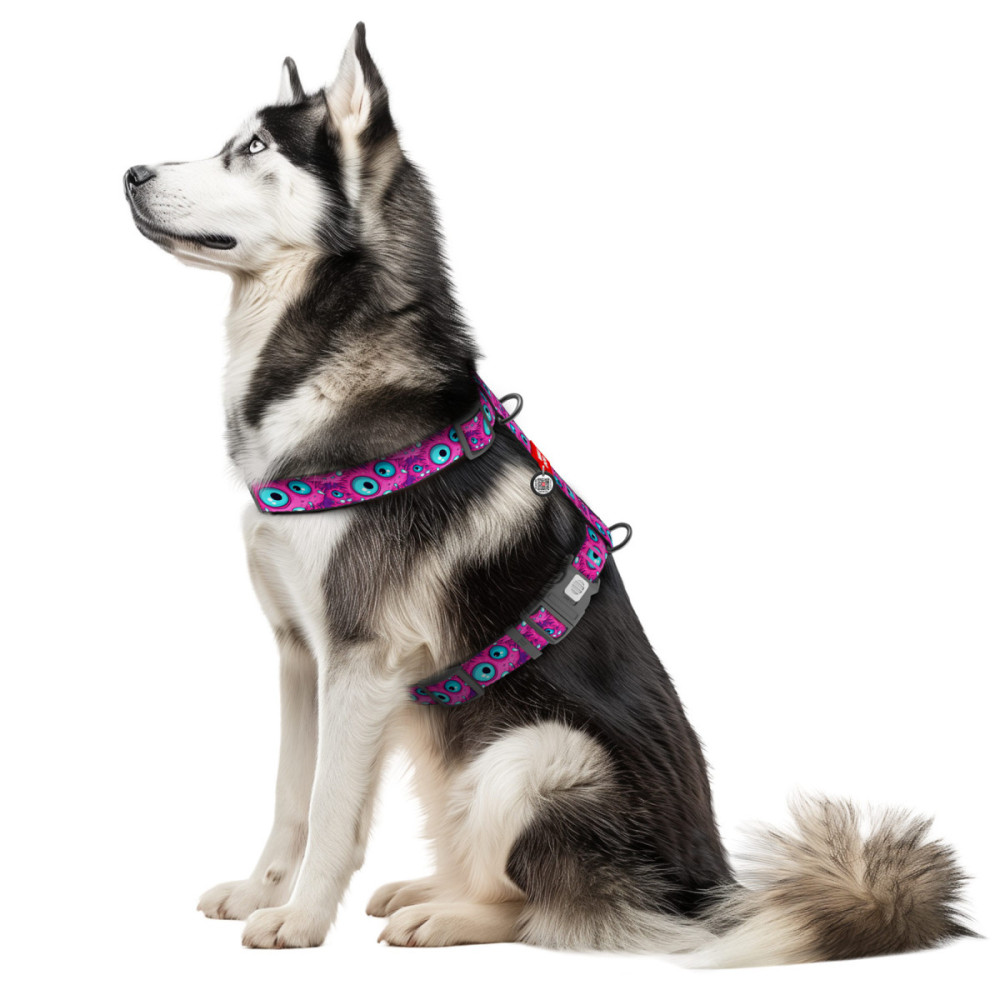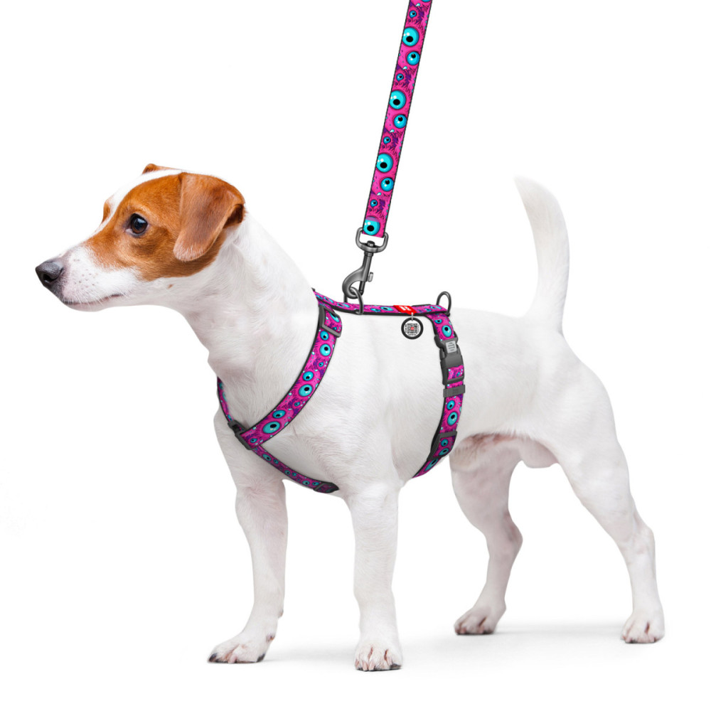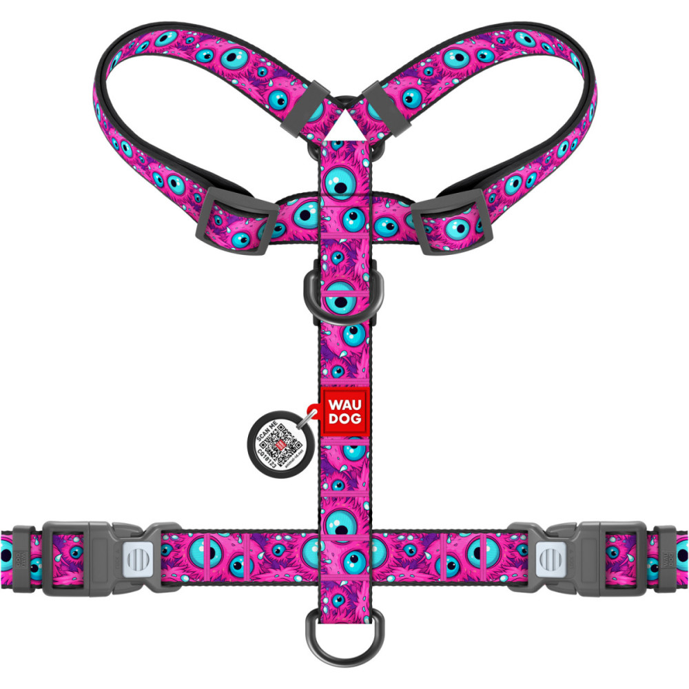 Шлея для собак WAUDOG Nylon у сміливому дизайні "Око монстра" — це вибір для тих, хто любить бути в центрі уваги. Яскравий, трохи "божевільний" принт з очима ніби натякає: "Я стежу за тобою!". Ця шлея для собак не лише підкреслює харизму вашого улюбленця, а й забезпечує йому максимальний комфорт завдяки правильній анатомії.