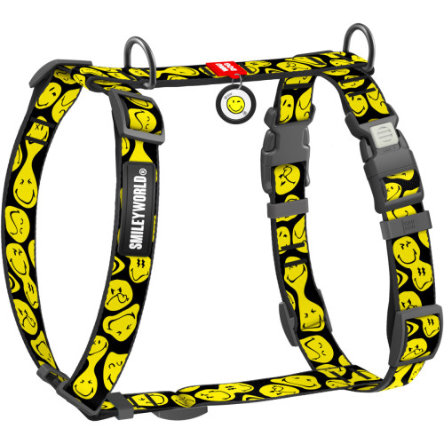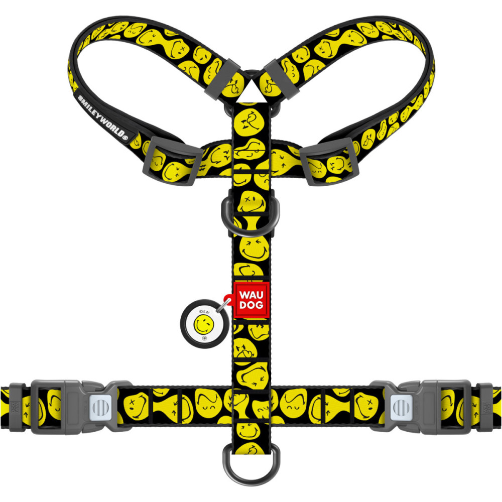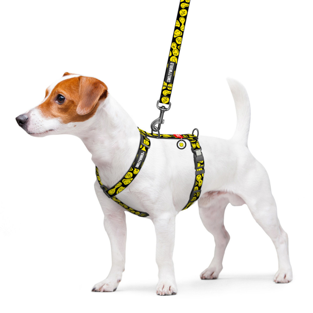 Шлея для собак WAUDOG Nylon у контрастному дизайні "Смайли на чорному" — це вибір тих, хто цінує стиль та лаконічність з ноткою гумору. Яскраві жовті емодзі на глибокому чорному тлі виглядають дуже виразно і пасують до будь-якого забарвлення шерсті. Ця шлея для собак поєднує в собі трендовий вигляд та професійну анатомічну конструкцію.