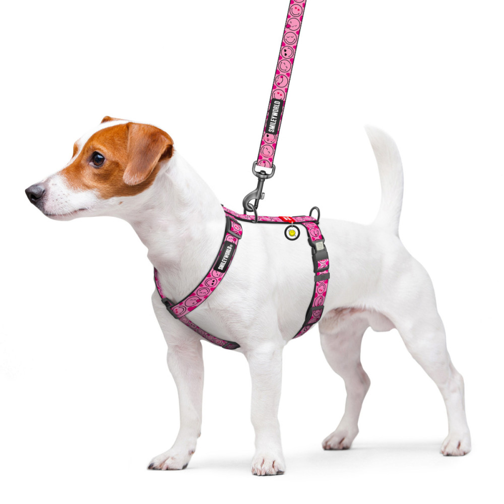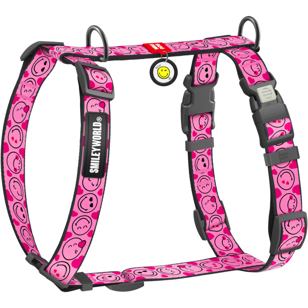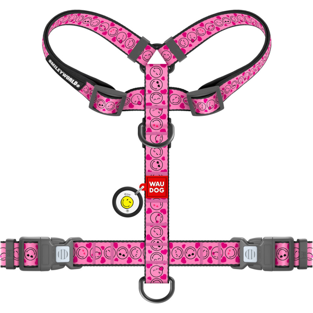 Шлея для собак WAUDOG Nylon у життєрадісному дизайні "Смайли на рожевому" створена для того, щоб дарувати радість. Яскраві емодзі на ніжному фоні перетворюють кожну прогулянку на свято гарного настрою. Ця шлея для собак — ідеальний вибір для тих, хто хоче підкреслити дружелюбність свого улюбленця, не жертвуючи його комфортом та безпекою.