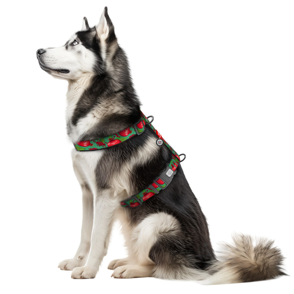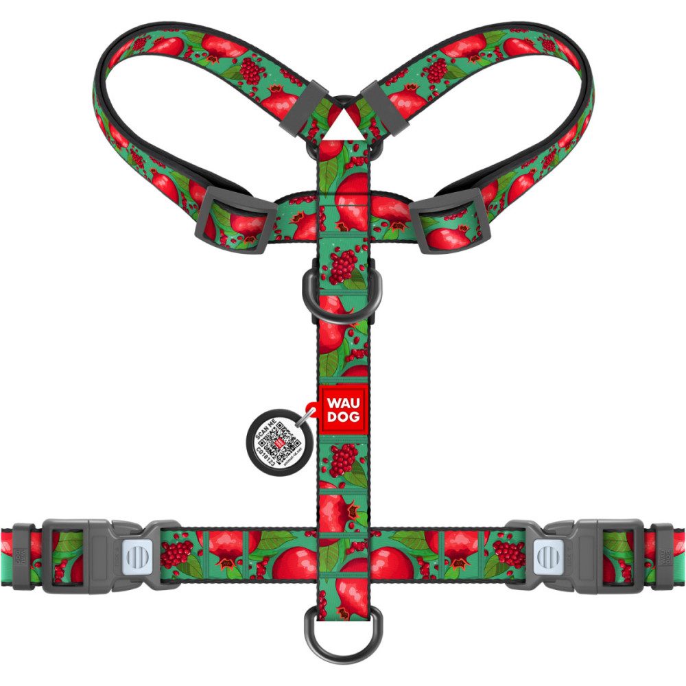 Шлея для собак WAUDOG Nylon у витонченому дизайні "Гранати" — це символ достатку та яскравого життя вашого улюбленця. Соковиті рубінові плоди на контрастному фоні створюють неповторний стиль, який привертає погляди. Ця шлея для собак поєднує в собі естетичну красу та еталонну анатомічну конструкцію для безпечних прогулянок.
