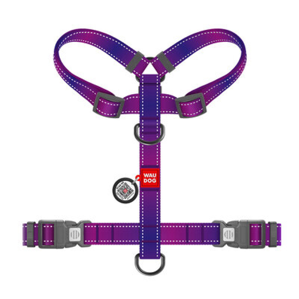 Конструктивні особливості: шлея має анатомічно правильну Н-подібну форму, яка є найбільш безпечною для здоров'я собаки, оскільки не тисне на шию та не сковує рухів. Модель оснащена 2-ма півкільцями (на спині та на грудях) для рівномірного розподілу навантаження. Фіолетовий колір чудово контрастує зі світлою шерстю та гармонійно виглядає з одягом для собак.