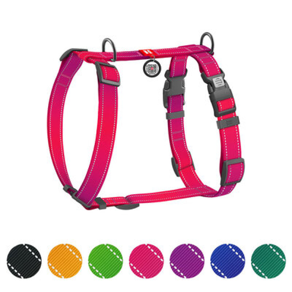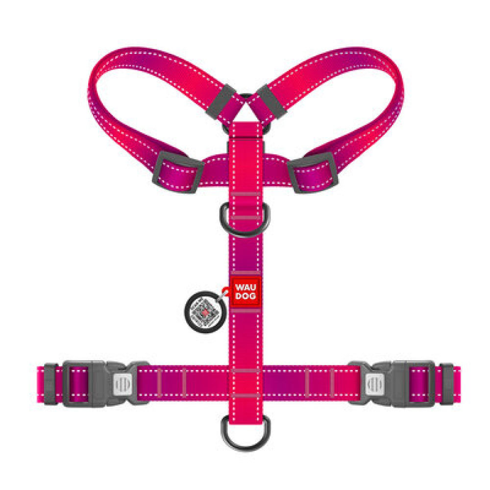 Конструктивні особливості: шлея має анатомічно правильну Н-подібну форму, яка не сковує рухів і рівномірно розподіляє навантаження на грудну клітку, бережучи шию собаки. Модель оснащена 2-ма півкільцями (на спині та на грудях). Рожевий колір виглядає дуже ефектно, особливо в поєднанні з контрастним одягом для собак.