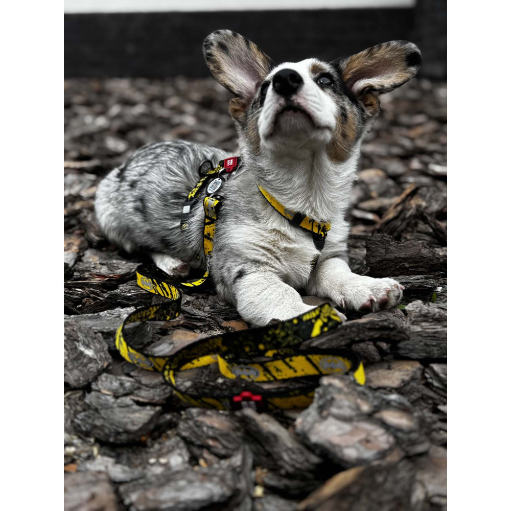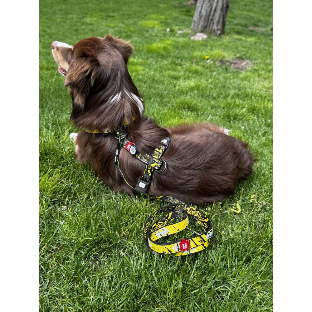 - Вночі: Елементи малюнка відбивають світло фар та ліхтарів. Собака стає видимим для водіїв, що критично важливо для прогулянок біля дороги.