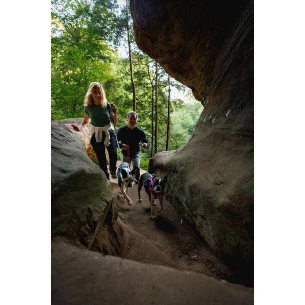 Так, шлейка має додаткову петлю на грудях, яка допомагає м'яко перенаправляти рух собаки та зменшувати натяг повідця під час прогулянок.