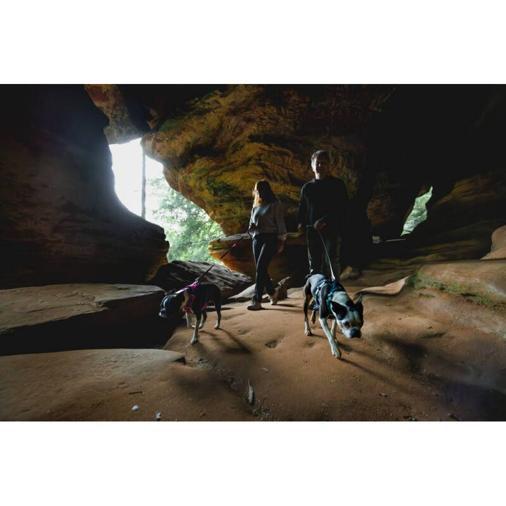 Шлейка оснащена двома точками кріплення повідця: алюмінієвим V-подібним кільцем на спині для щоденних прогулянок та надміцною петлею на грудях для собак, що схильні тягнути. Чотири точки регулювання дозволяють ідеально підігнати амуніцію під анатомічні особливості вашого улюбленця.