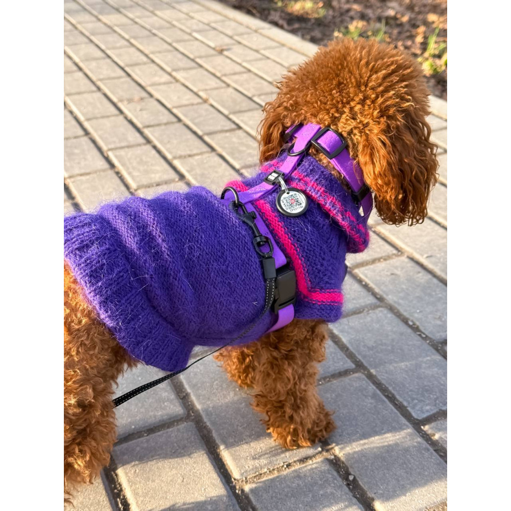 - Дизайн: насичений фіолетовий колір не вигорає на сонці та виглядає ефектно на будь-якій шерсті.