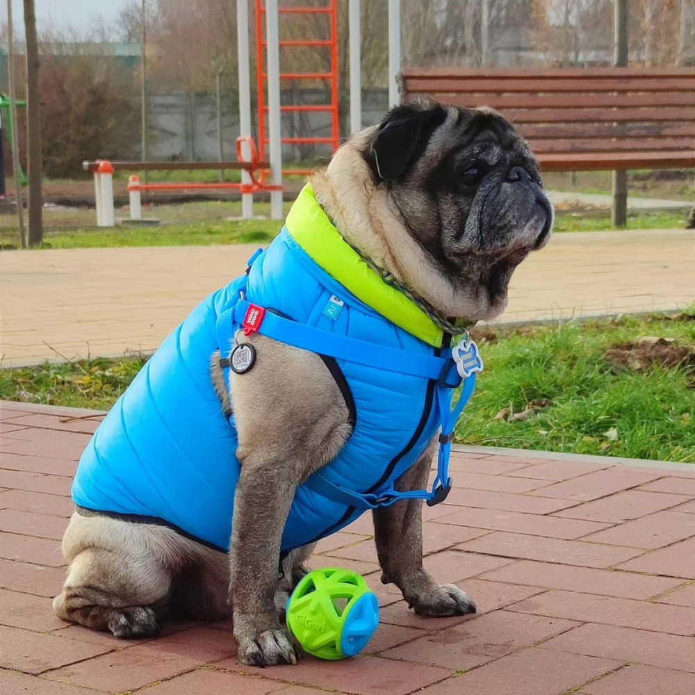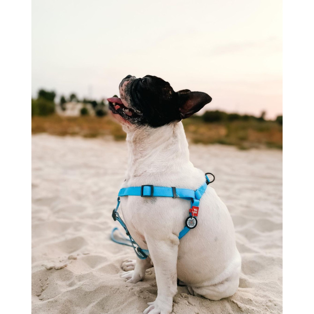 Чому варто обрати цю модель: на відміну від звичайних шлей, тут використовується надміцна фурнітура з алюмінієвого сплаву. Вона виглядає дорого, витримує великі навантаження, але при цьому залишається легкою. Блакитний колір шлеї не вигорає на сонці та чудово освіжає вигляд собаки, особливо у поєднанні з одягом для собак.