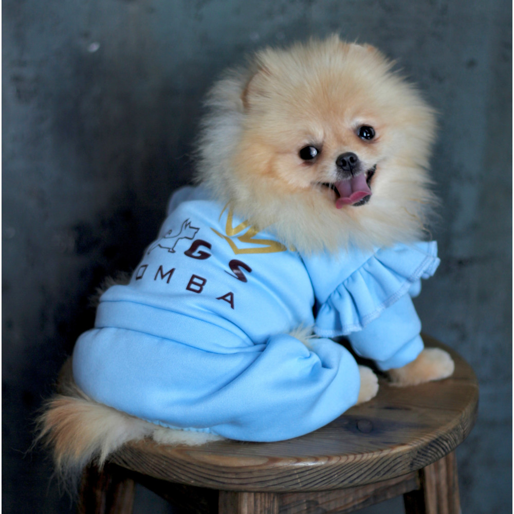 Костюм Dogs Bomba D-164 поєднує практичність та стиль завдяки використанню якісної трьохнитки з начосом, що гарантує тепло та м'якість. Стильна текстильна накатка на спині та декоративні рюші додають виробу індивідуальності, роблячи вашого улюбленця помітним під час прогулянок.
