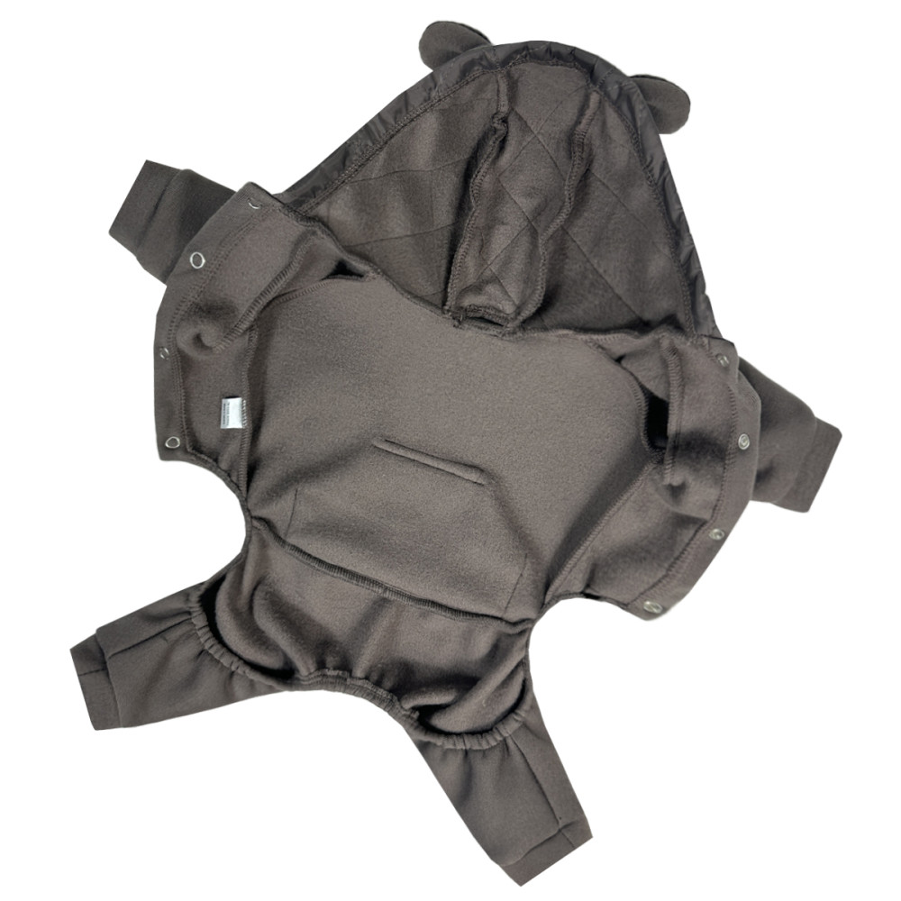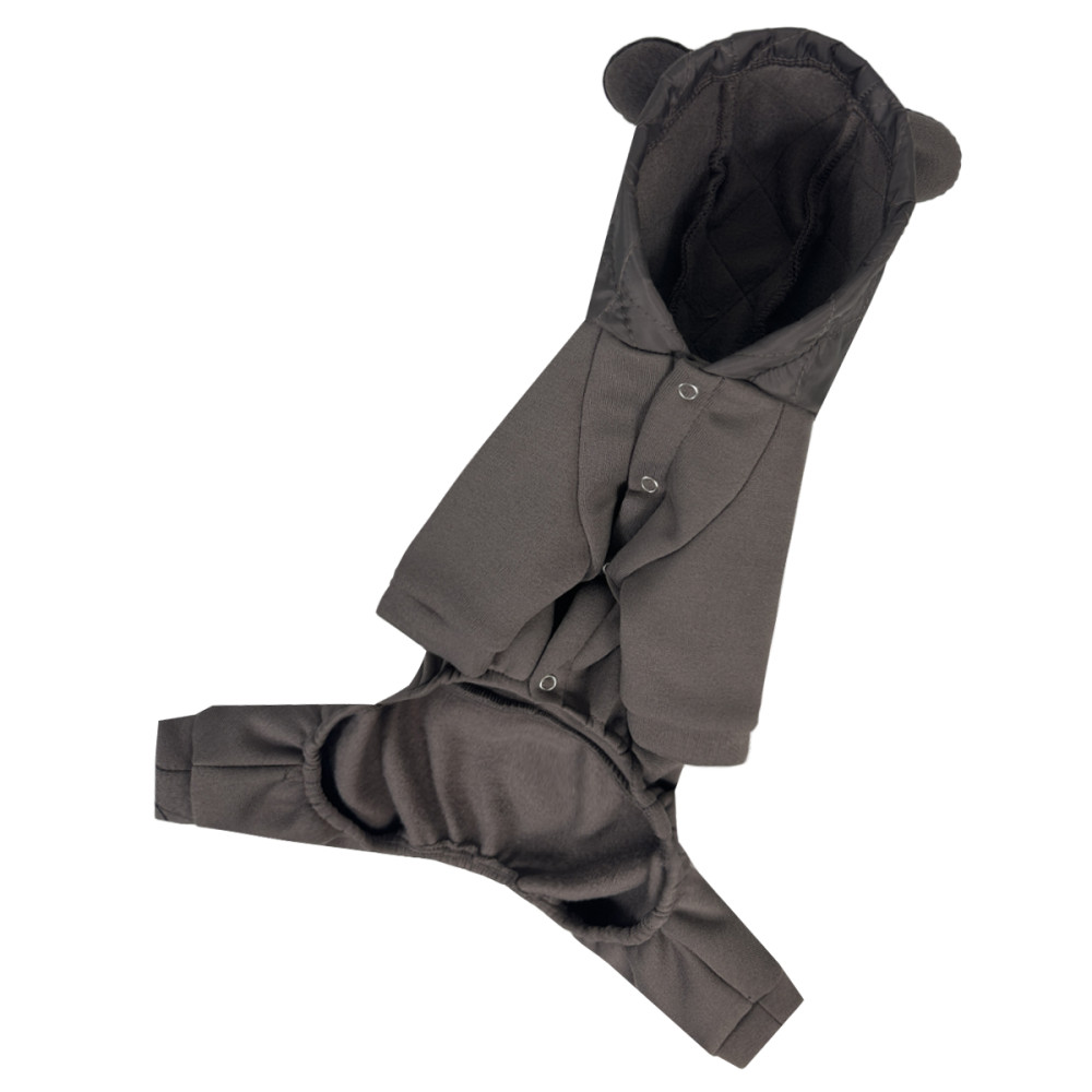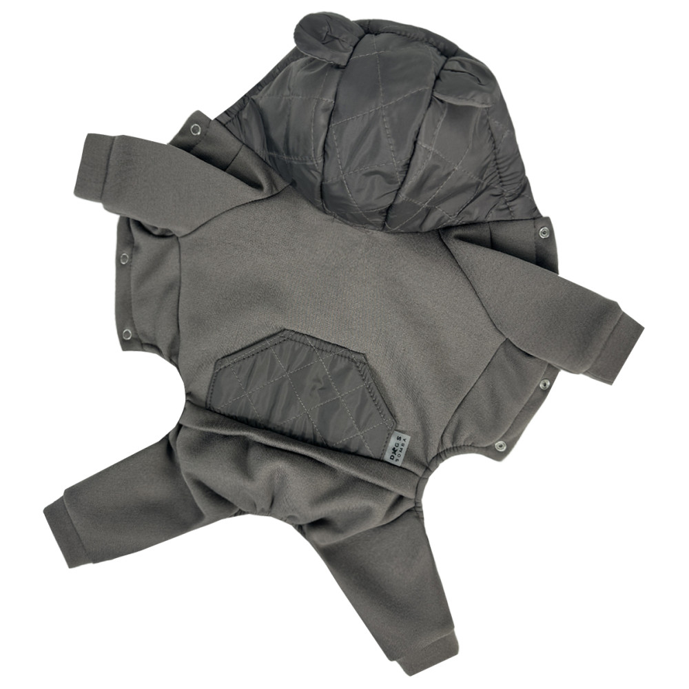 Костюм Dogs Bomba D-230 виготовлений з високоякісної тринитки з начосом, що забезпечує тепло та комфорт. М'який флісовий внутрішній шар приємний до тіла та ефективно утримує тепло. Зручний капюшон додає функціональності, захищаючи голову улюбленця від вітру.