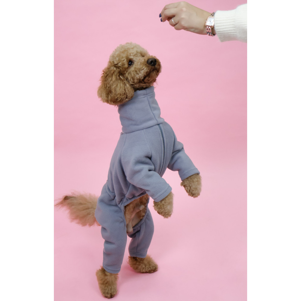 Модель виготовлена з щільного флісу преміум якості, що добре зберігає тепло та приємний на дотик. Костюм застібається на блискавку по животу, що робить його зручним у використанні. Завдяки регулюванню об’єму грудей костюм легко адаптується під собаку різної комплекції, забезпечуючи зручну посадку.