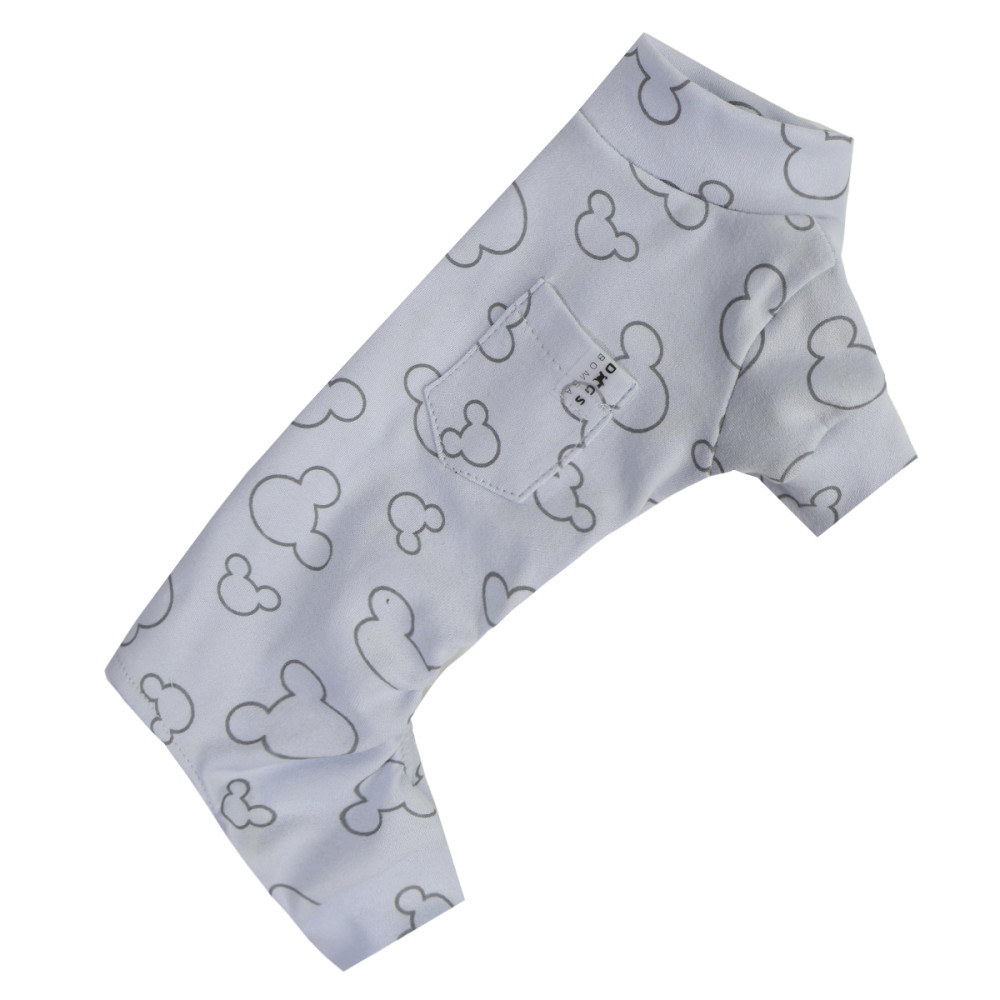 Піжама блакитна для собак Dogs Bomba D-223 виготовлена з натуральної трикотажної тканини (100% бавовна) та прикрашена принтом «Міккі контур». Конструкція моделі цільна, не має застібок, що забезпечує максимальний комфорт тварини під час сну та відпочинку. Крій унісекс підходить як хлопчикам, так і дівчаткам. Відмінний варіант для дому, прохолодної весни або сухої осені. Взимку рекомендуємо використовувати як додатковий шар під зимові комбінезони для собак.