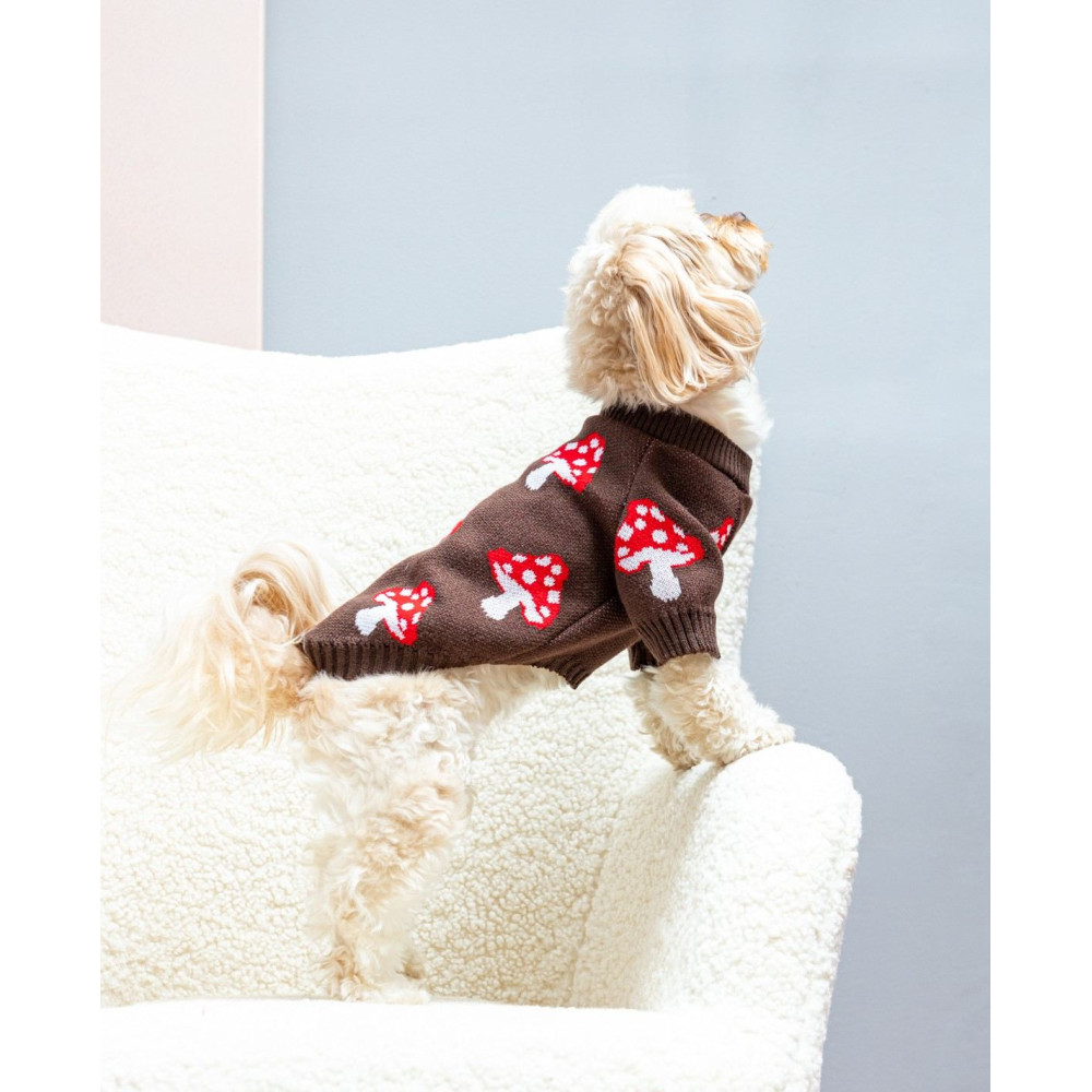Светр та кофти для собак поповнилися зручною моделлю — в'язаний светр Грибочки шоколадний для собак Dogs Bomba Y-400. Це повноцінний самостійний одяг для прохолодної весни, осені, а також комфортний варіант для домашнього використання. Модель виготовлена з комбінованої еластичної пряжі, має суцільну конструкцію без застібок та чудово підходить для щоденних прогулянок або відпочинку вдома. Завдяки високій розтяжності матеріалу виріб легко одягається через голову та щільно прилягає до тіла.