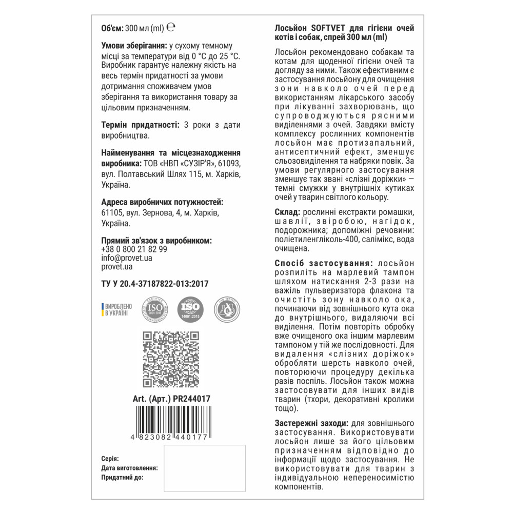Переваги лосьйону Provet SOFTVET: