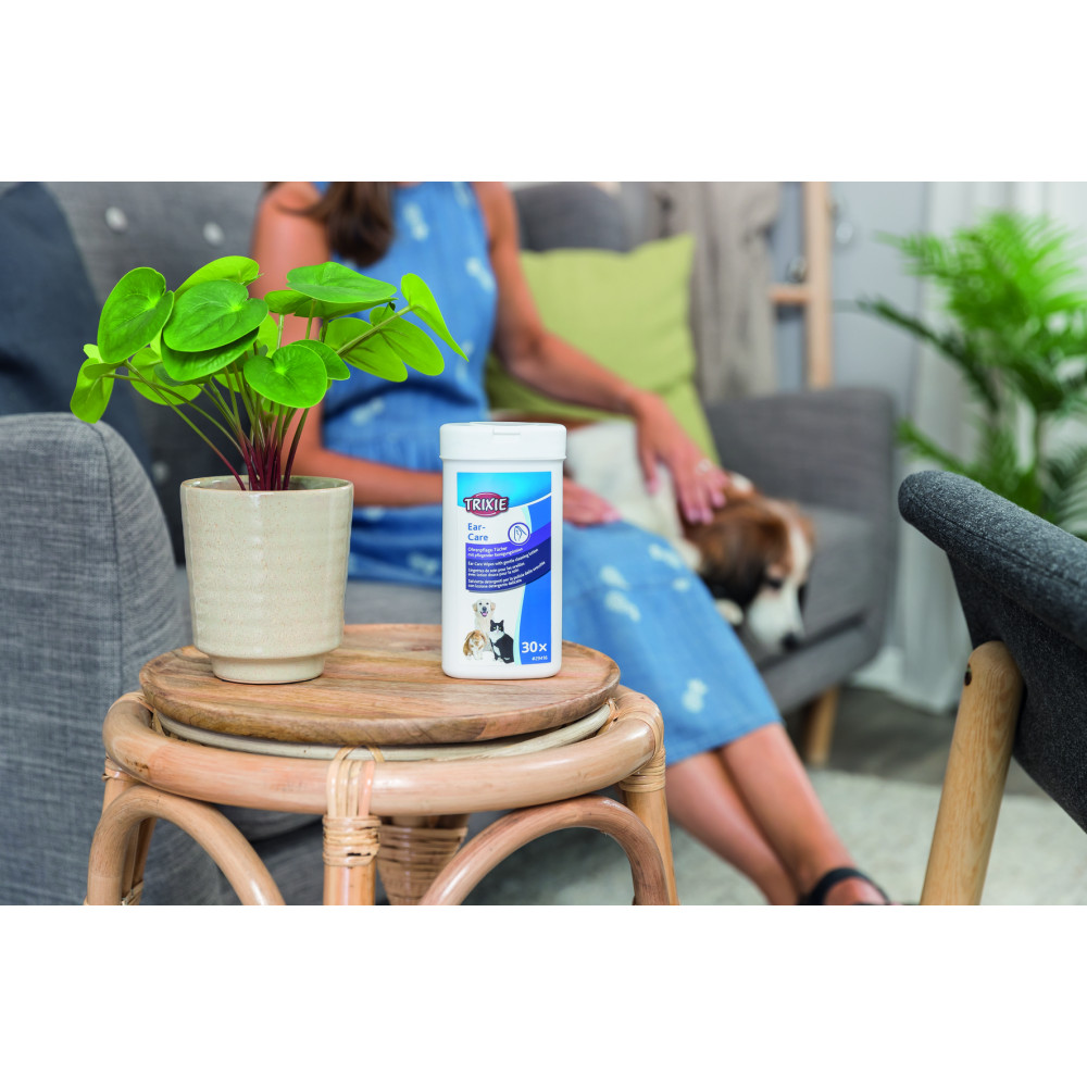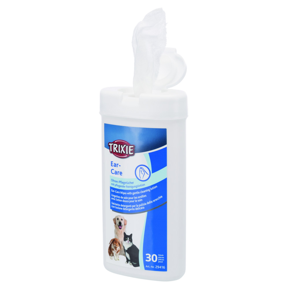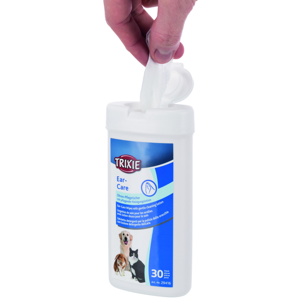Вологі серветки Trixie — це спеціально розроблений засіб для регулярної гігієни вух собак, котів та інших домашніх тварин. Вони просочені живильним лосьйоном на основі алое вера та гамамелісу, який м'яко розчиняє бруд і вушну сірку, не викликаючи подразнення.