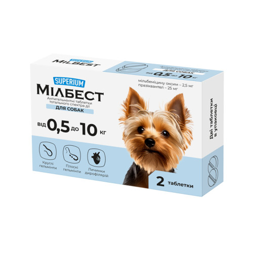 Оберіть SUPERIUM Мілбест для забезпечення комплексного захисту від паразитів та підтримки здоров'я вашого собаки.