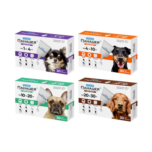 Формула крапель «Панацея» забезпечує широкий спектр дії, захищаючи від кліщів, бліх, гельмінтів та інших паразитів, які можуть загрожувати здоров'ю вашого собаки.