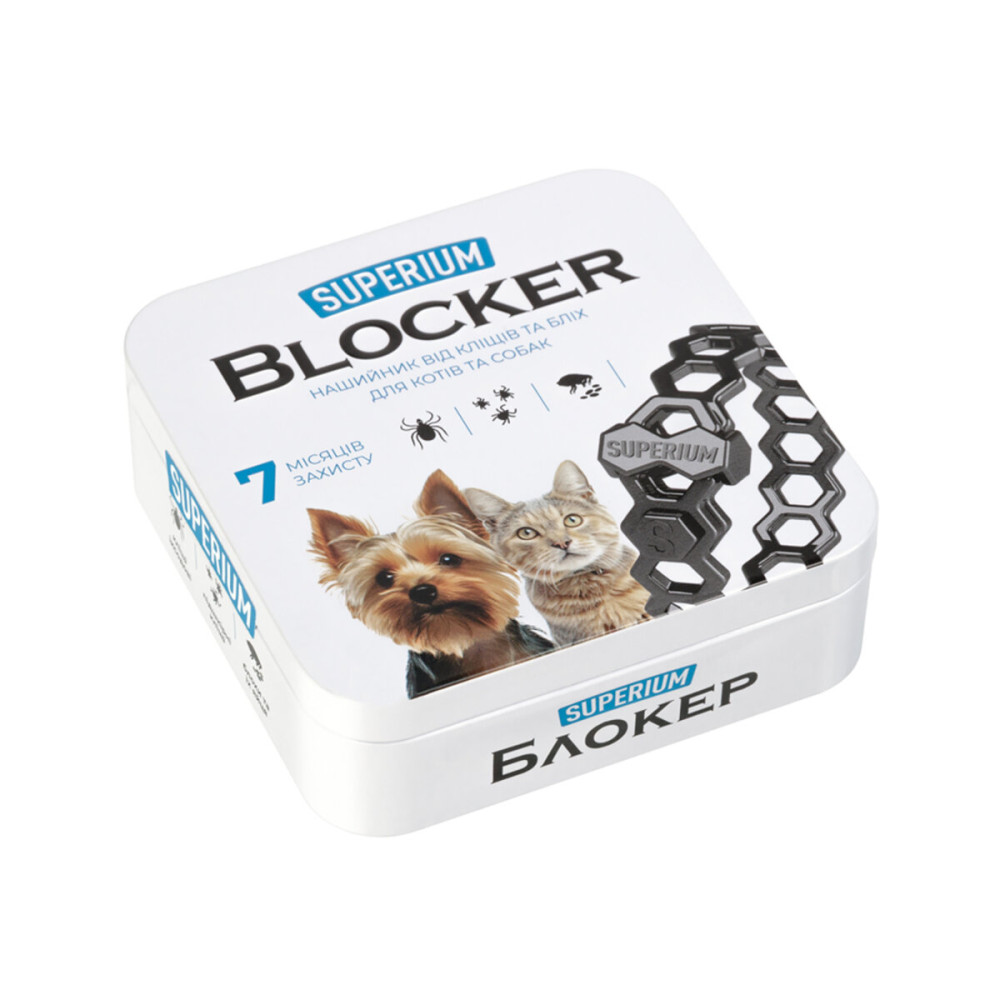 Протипаразитарний нашийник SUPERIUM Блокер призначений для захисту котів та собак від кліщів, бліх та інших паразитів. Забезпечує ефективний захист до 7 місяців, запобігаючи зараженню та сприяючи лікуванню захворювань, викликаних паразитами.